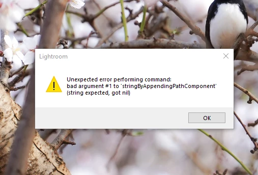 Cant export photos - Unexpected error while exporting images from Lightroom on Windows 10