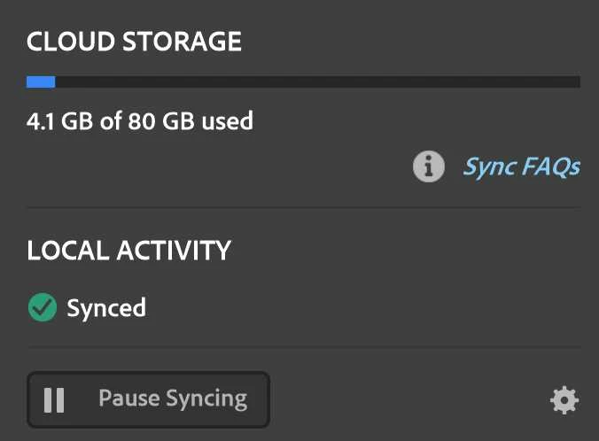 Checking Lightroom it says 4.1 GB of 80GB used.