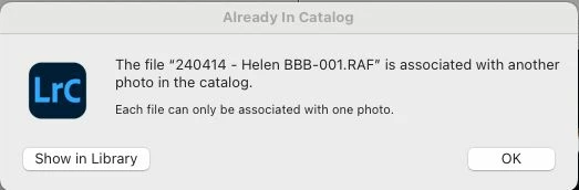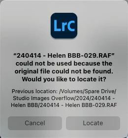 However, what I failed to consider was the multitude of collections that I have. If I go into a collection in the Library view, the little exclamation mark is there saying the original file cannot be located (as it thinks it is on the old drive). When I select the option to locate it and navigate to the new location I get a dialog saying that 'the file is associated with another file' and LR won't accept the file in its new location (even though it is the same file with identical filename etc)