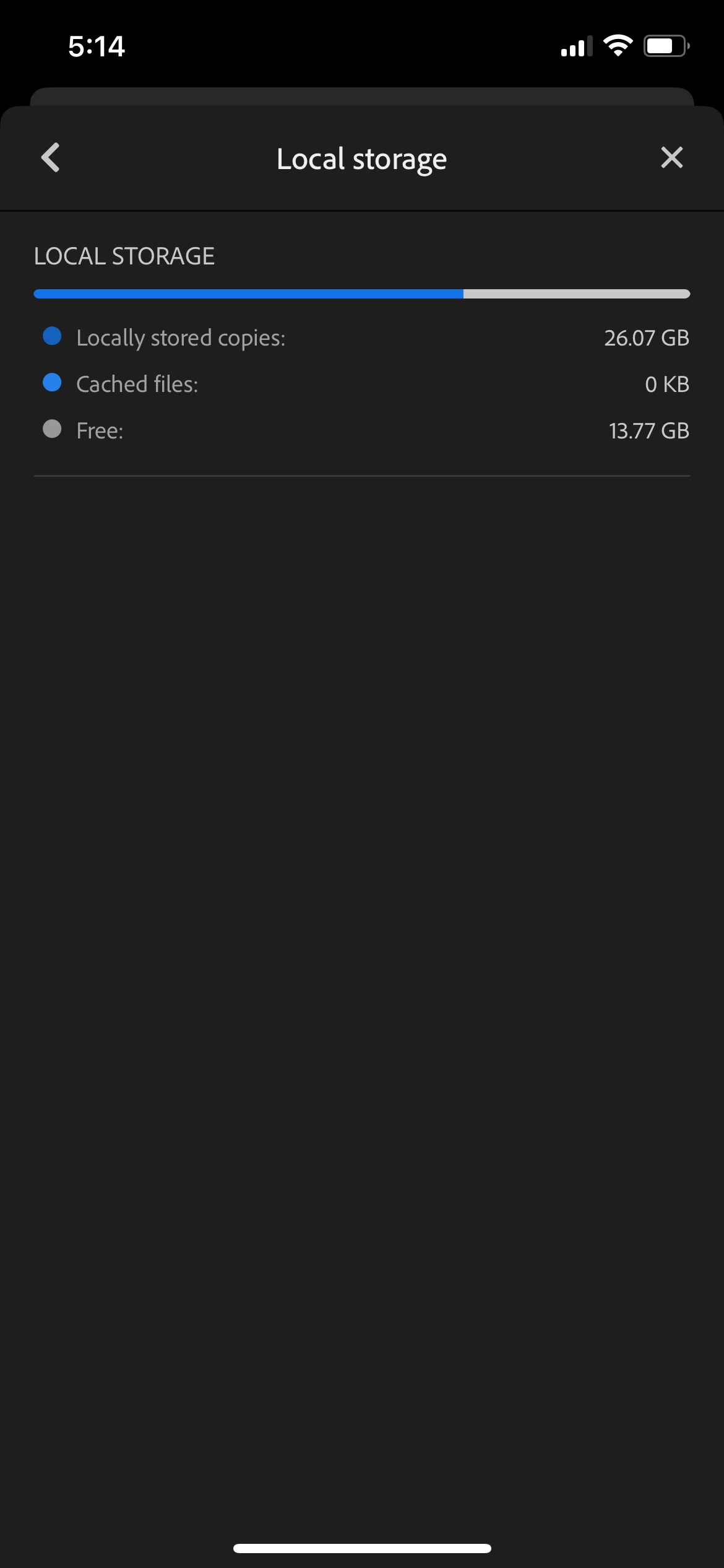 I have the Lightroom app on iPhone and it's taking up way too much space. After extensive googling, I've seen people clear their cache by clicking the three dots and navigating to local storage... only my app does not have a clear cache button. Is there a way to clear it without losing the couple of presets I've purchased?