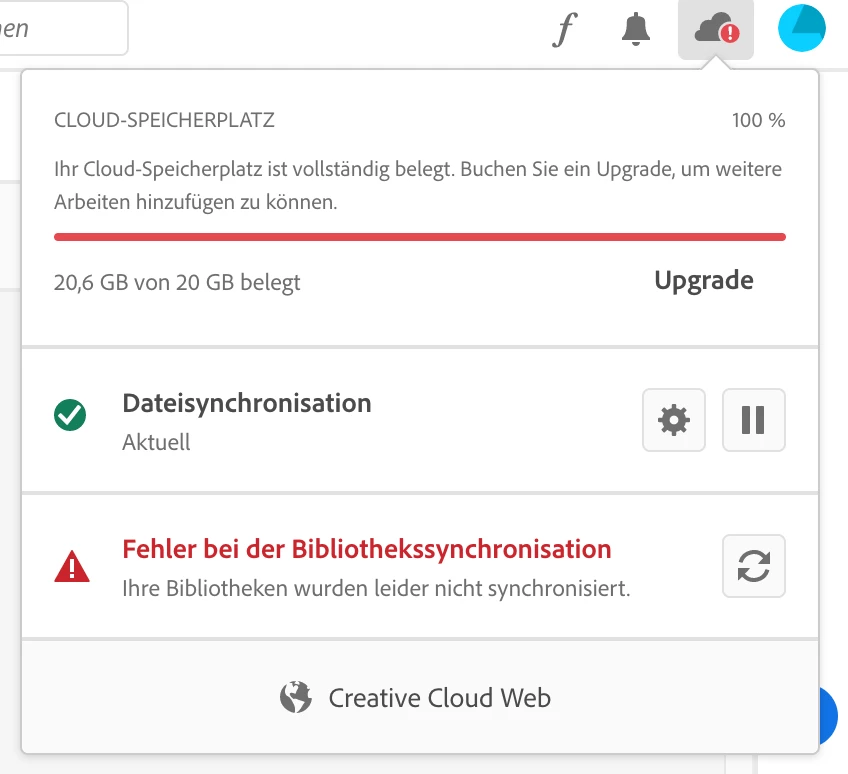 Jetzt ist die Cloud voll (20GB). Die Bilder habe ich in Lightroom entfernt aber der Cloudspeicher ist angeblich immer noch voll.