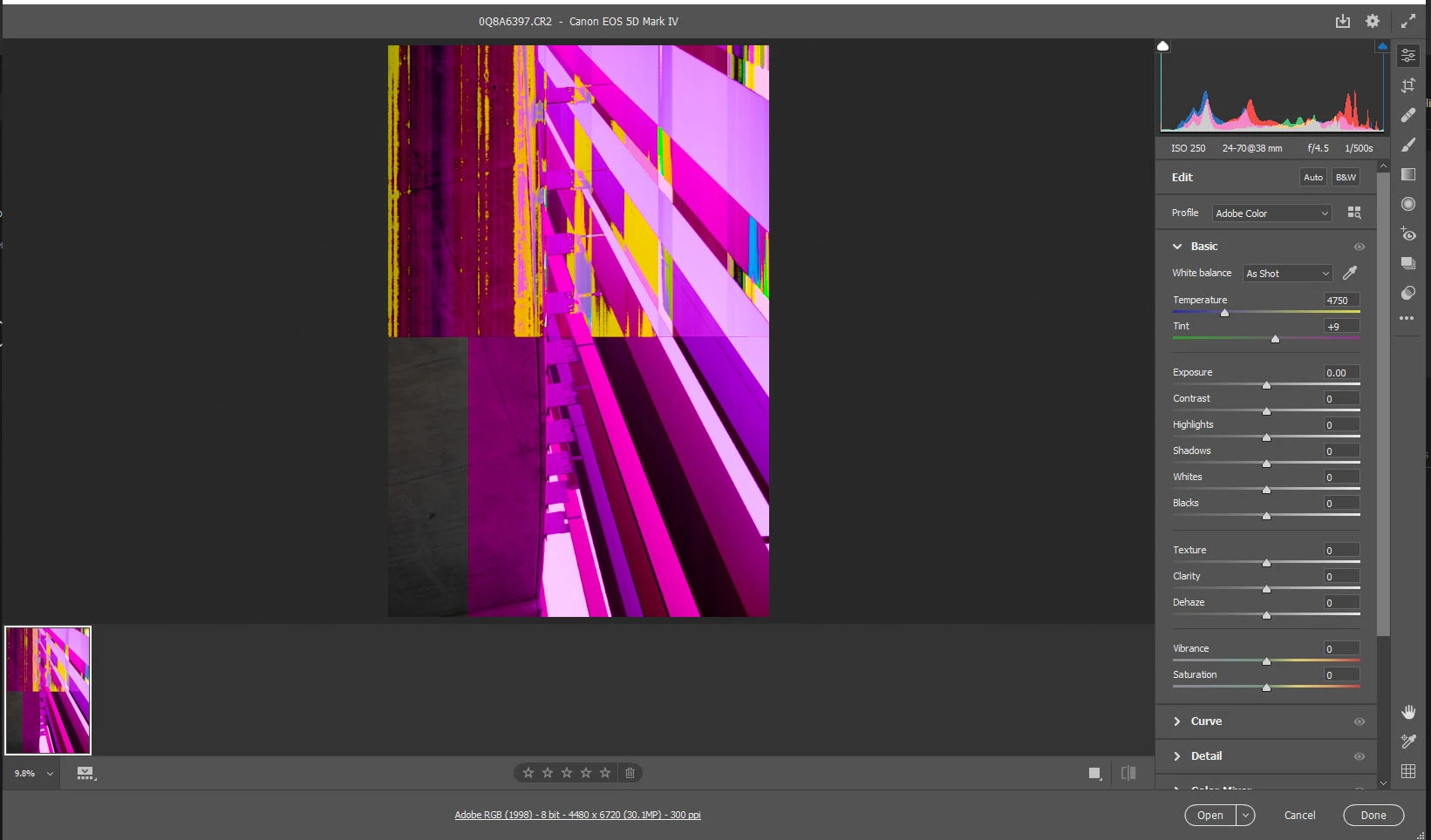 So some of the raw .CR2 files out of my Canon 5D Mk.IV look fine in explorer as the first picture shows however when I import them into either Lightroom or Photoshop they get this crazy colour error in them.