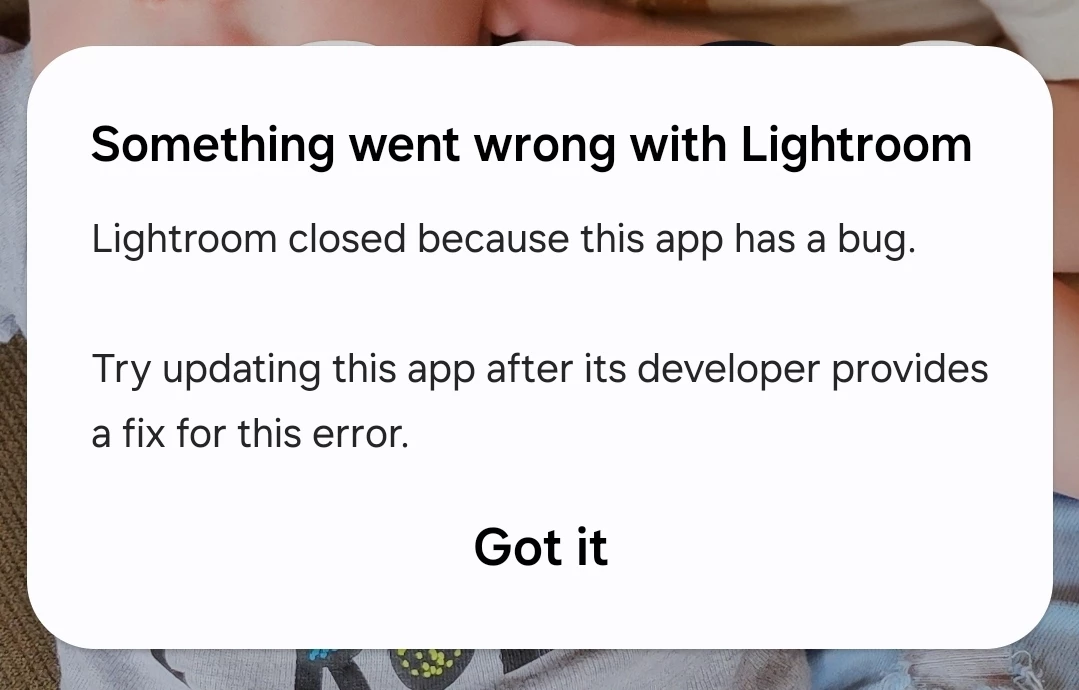 I can't pinpoint exactly when it started, but Lightroom mobile keeps crashing on my Samsung Galaxy S22 Ultra. I've uninstalled and reinstalled the app, cleared cache, cleared storage, everything... with no improvement. It will sometimes allow me to edit and export one photo before crashing. Sometimes, it will crash just before exporting, and lose all my edits.