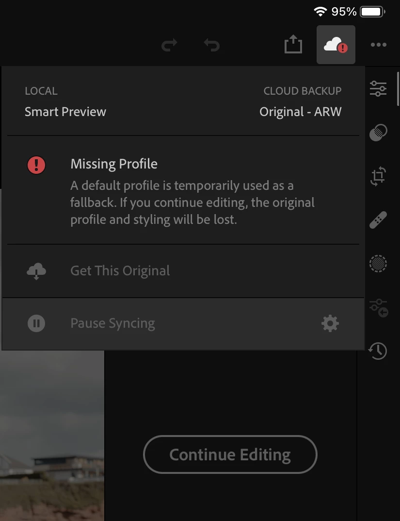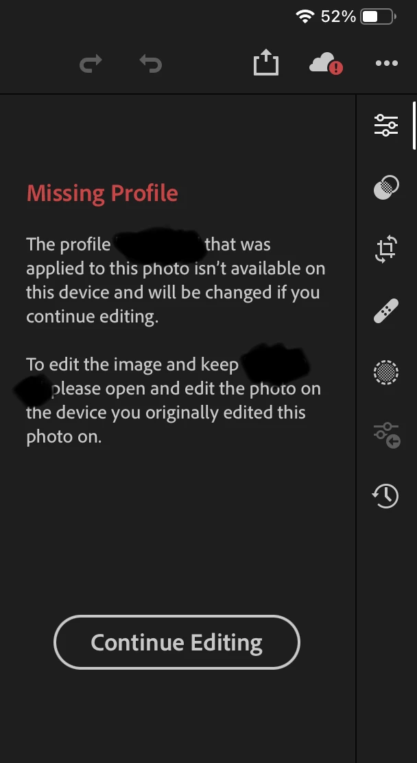 There's seems to be a bug when a profile is missing. The "Continue Editing" button doesn't do anything?