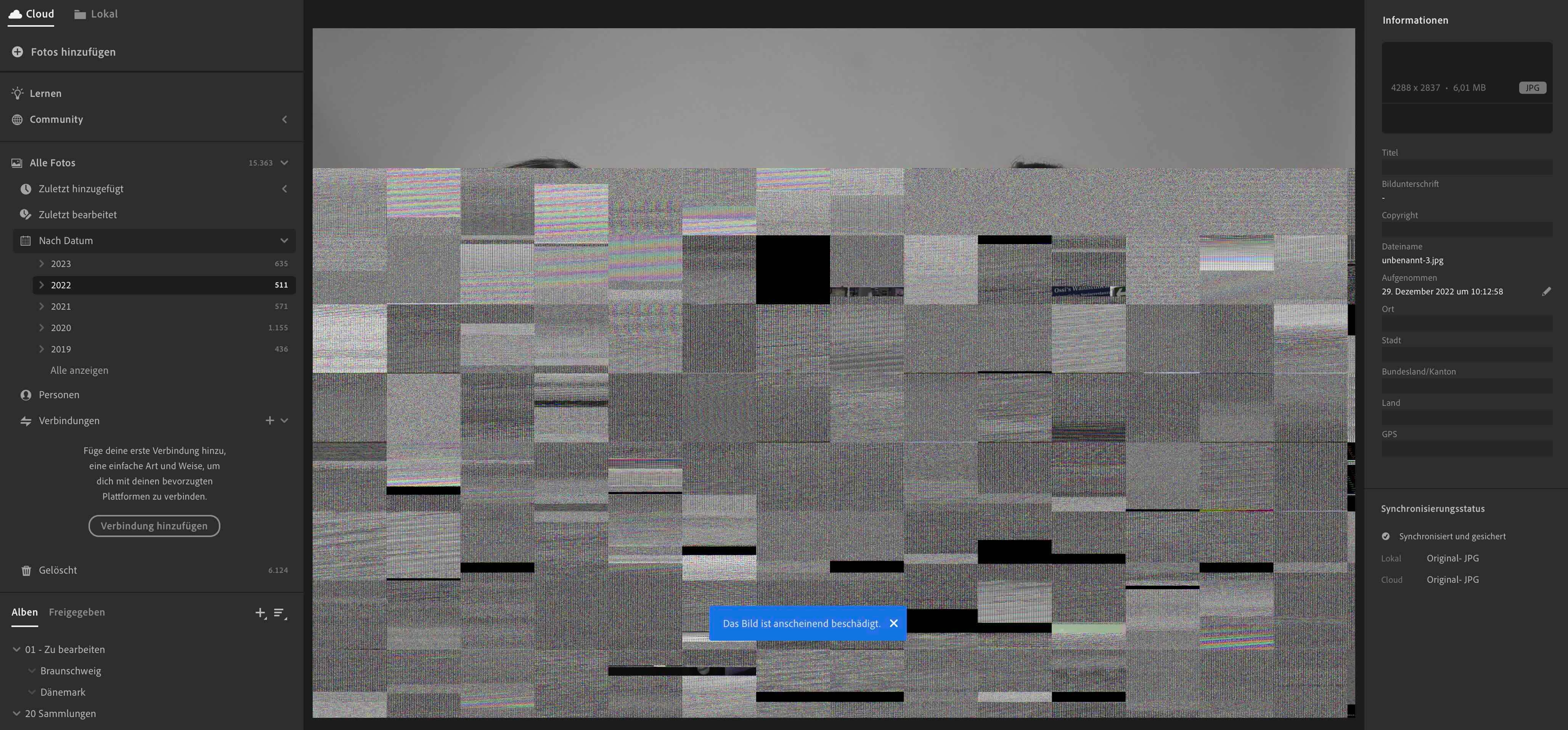 Dateien in der Cloud werden von der macOS Version von LR CC als fehlerhaft identifiziert