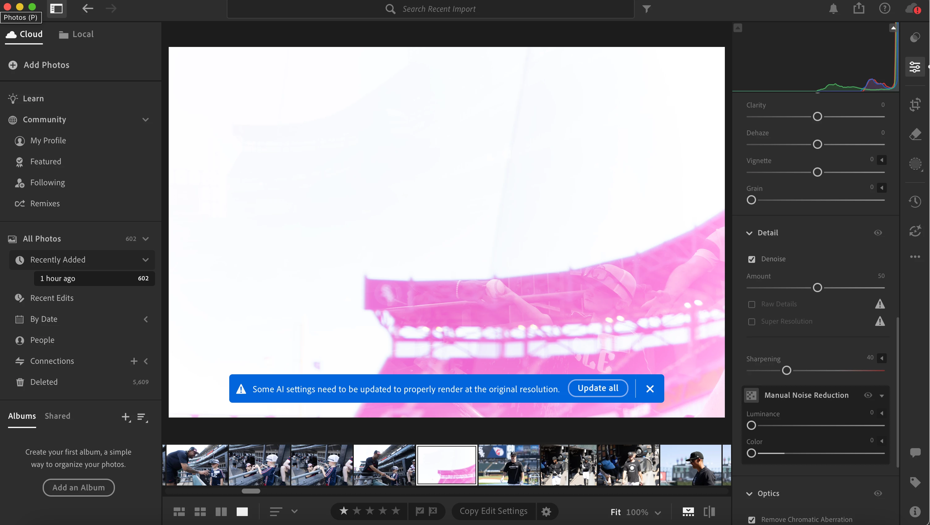 AafbcapturesParticipantForum|Forum|7 months agoAugust 10, 2025QuestionDenoise IssueForum|Forum|7 months agoAugust 10, 20251 reply89 viewsWhen I try to use denoise on a photo I get this weird warped image. Clicking the update all button that shows up doesn't fix it.macOS