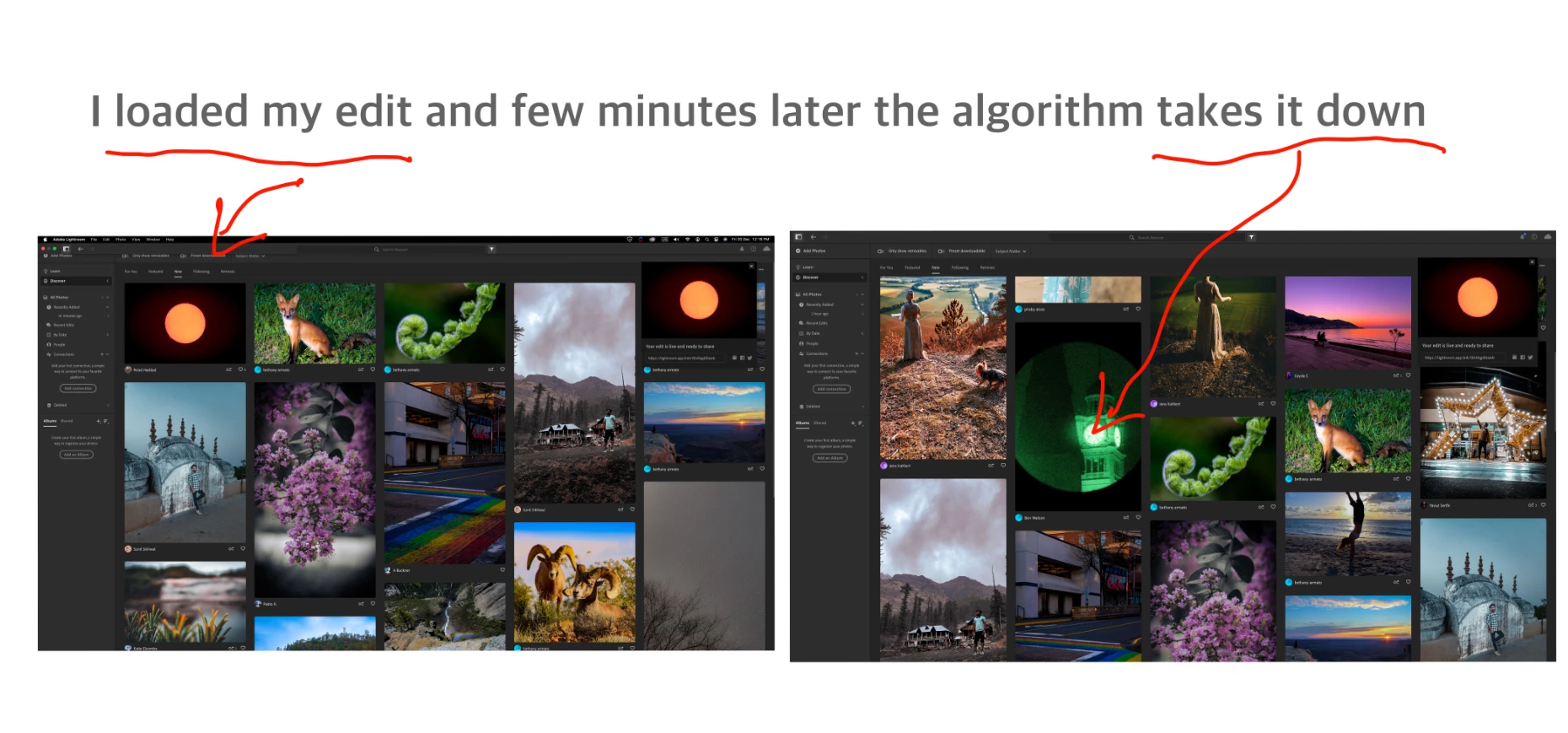 Jubilant_idea5EE9Known ParticipantForum|Forum|3 years agoDecember 30, 2022Questiondiscovery issueForum|Forum|3 years agoDecember 30, 20220 replies103 viewsi upladed my edit to discovery and few minutes later the algorithm takes it down and this is not the first time i needed to upload several times for it to stay on discovery macOS