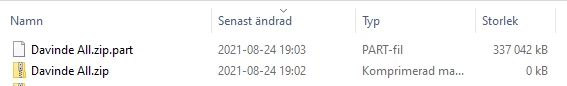 I am sharing some albums from Lightroom CC. Version is 4.3. I have enabled download for the albums, so that the receivers can download all images as a zip file. When someone tries to download however, the zip file is often corrupt. I have been able to recreate this error myself. There is a .PART-file created with the same name as the zip file. In the unsuccesful attempt there is a zip-file of 0 kB created alongside the PART-file, while in the successful attempt there is only a zip-file at the end.