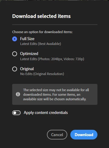 Download of albums from Lightroom web fails