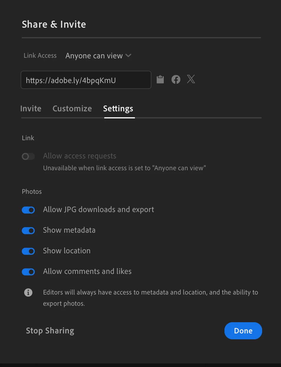 I love the option of sharing my photos with friends and family directly from Lightroom. The problem is that they mostly use mobile and not desktop. When they open the link on their phones they :