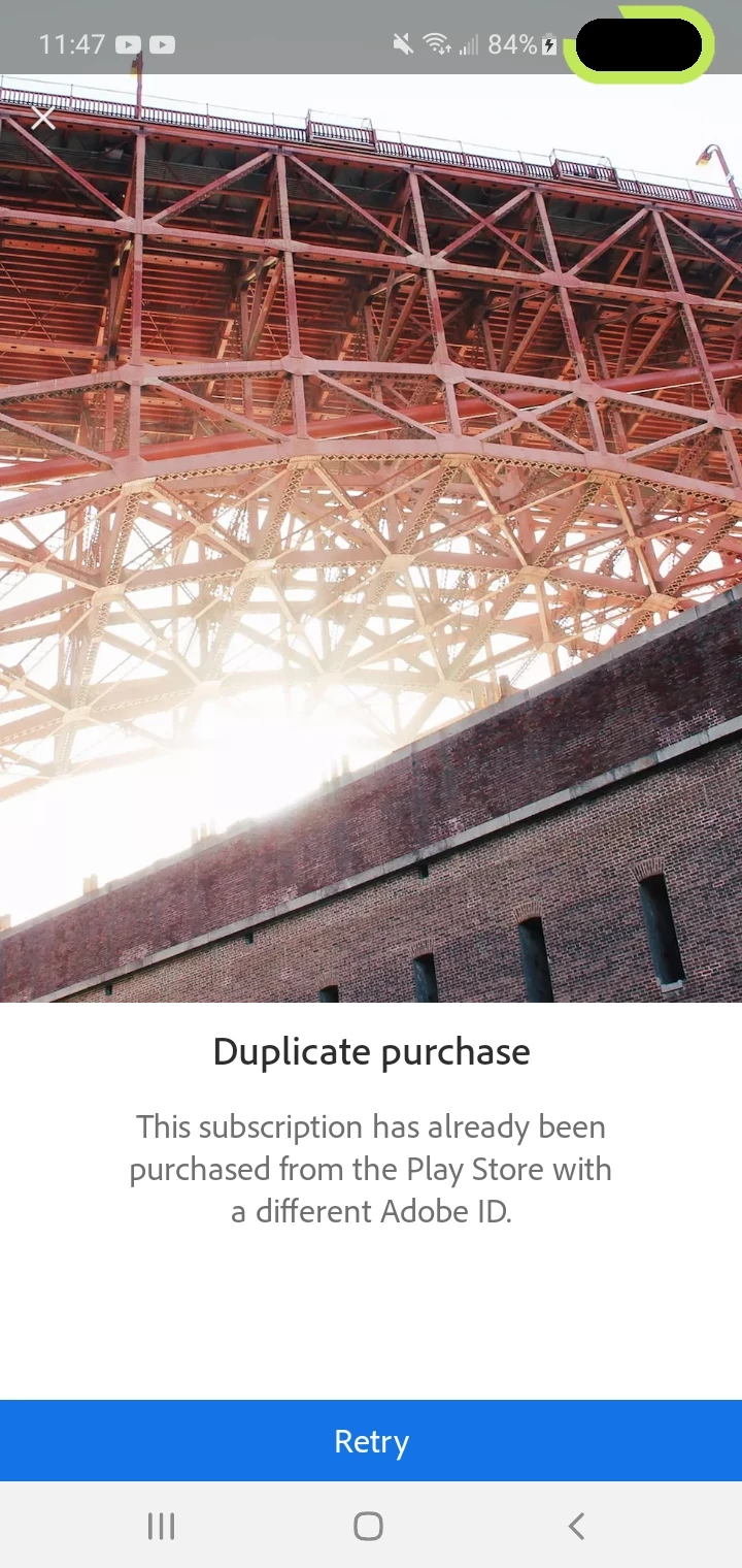 i purchased premium on mobile was ilI in with Facebook when purchased, tried to use a feature and got this error, so I logged out and tried logging back in through the play store Google account and I get the same error. I canceled and tried restoring subscription that also did not work....any help would be greatly appreciated