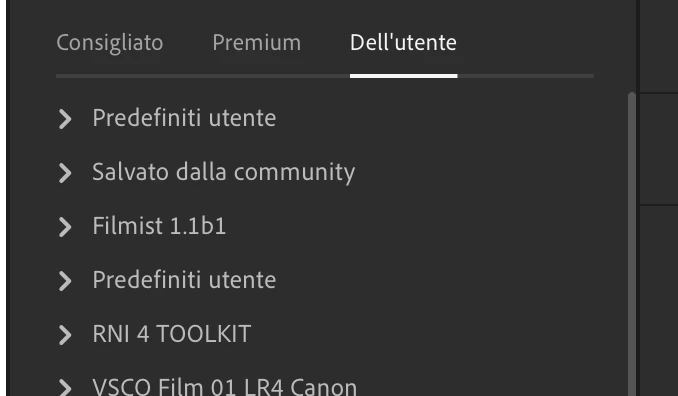 When adding a preset I can only see one "User Presets" folder where to save the new preset (here in italian "Predefiniti Utente"):