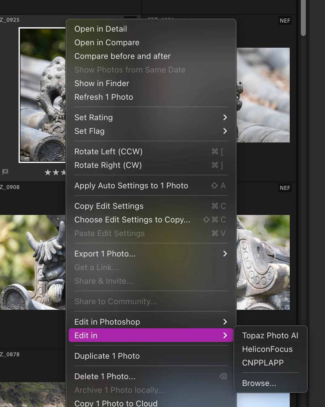 Edit in menu greyed out for multiple images