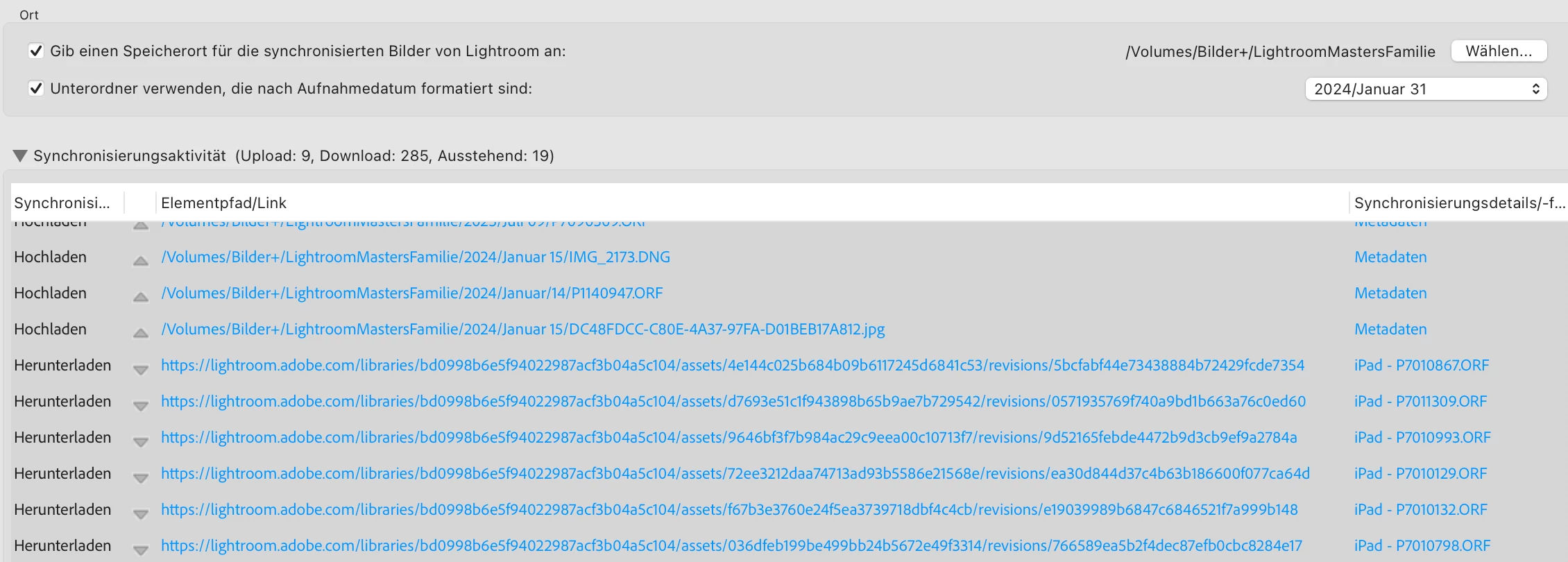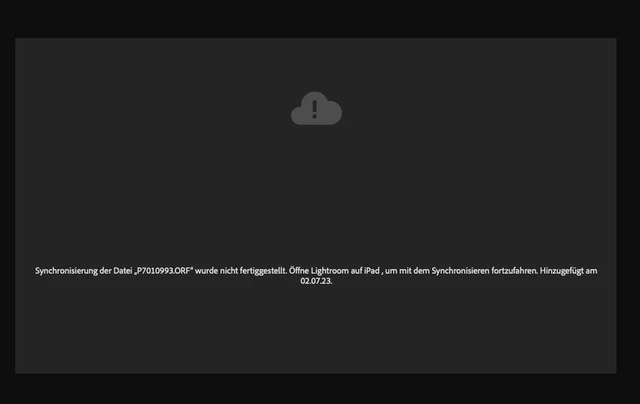 Die Bilder wurden auf dem Ipad gelöscht, blockieren aber den Synchronisationsvorgang. In der AdobeCloud gibt es offensichtlich noch störende Reste.