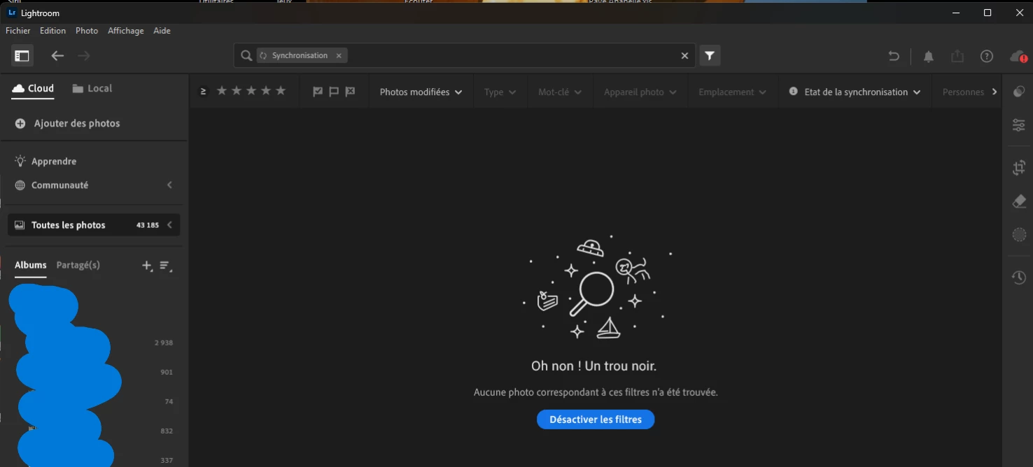 Quand je filtre "toutes mes photos" selon leur "état de synchronisation", il n'y en a aucune en "erreur" ou en "synchronisation".