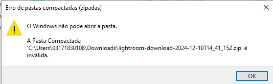 Ao baixar várias fotos no Lightroom o arquivo em zip vem sempre corrompido