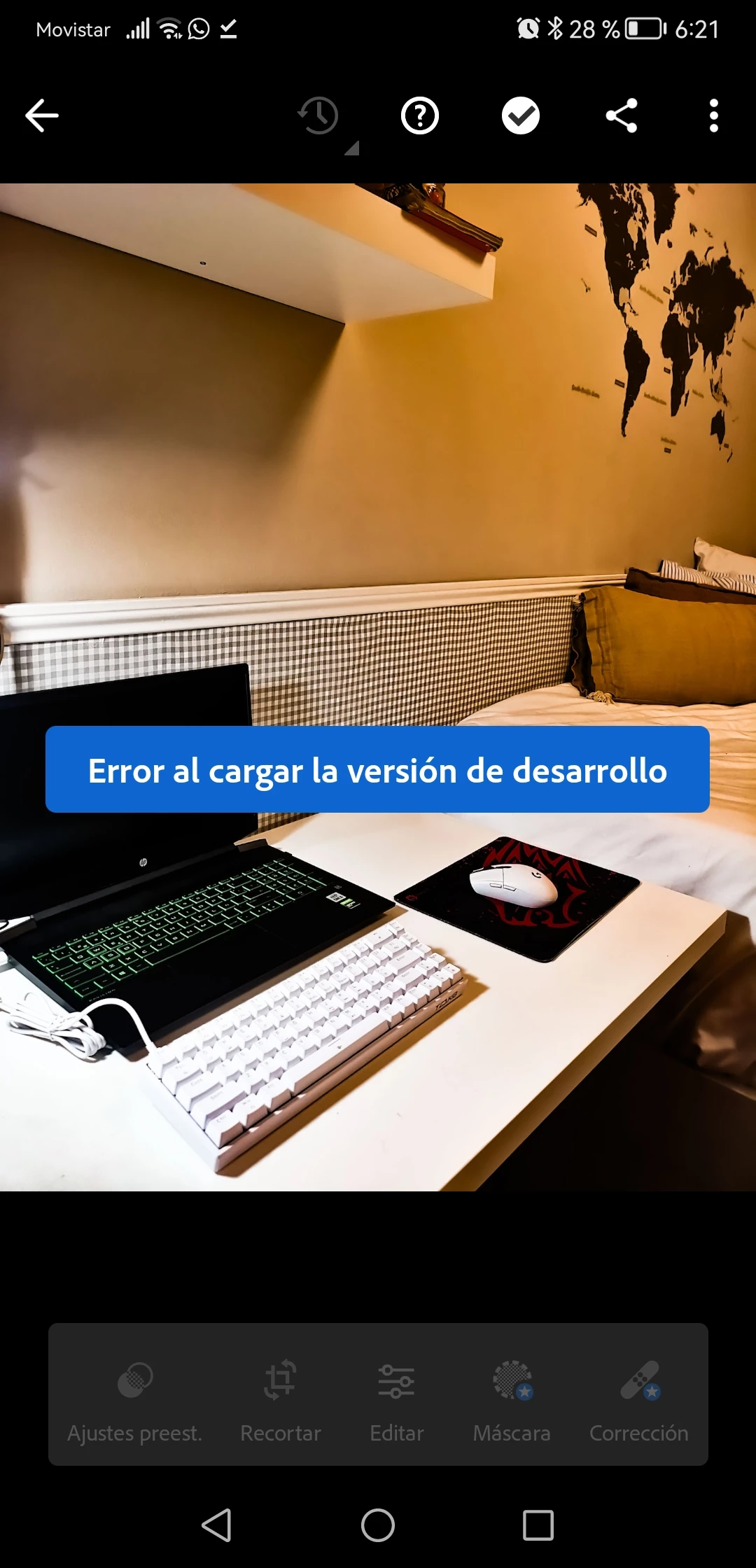 JJoana GonzalezParticipantForum|Forum|2 years agoDecember 22, 2023QuestionError al cargar la version de desarrolloForum|Forum|2 years agoDecember 22, 20230 replies173 viewsDesde hace unos días en determinadas fotos me sale el siguiente mensaje: error al cargar la versión de desarrollo. Mi modelo de móvil es un huawey y la versión de la aplicación de Lighroom es 9.1.1. graciasAndroid