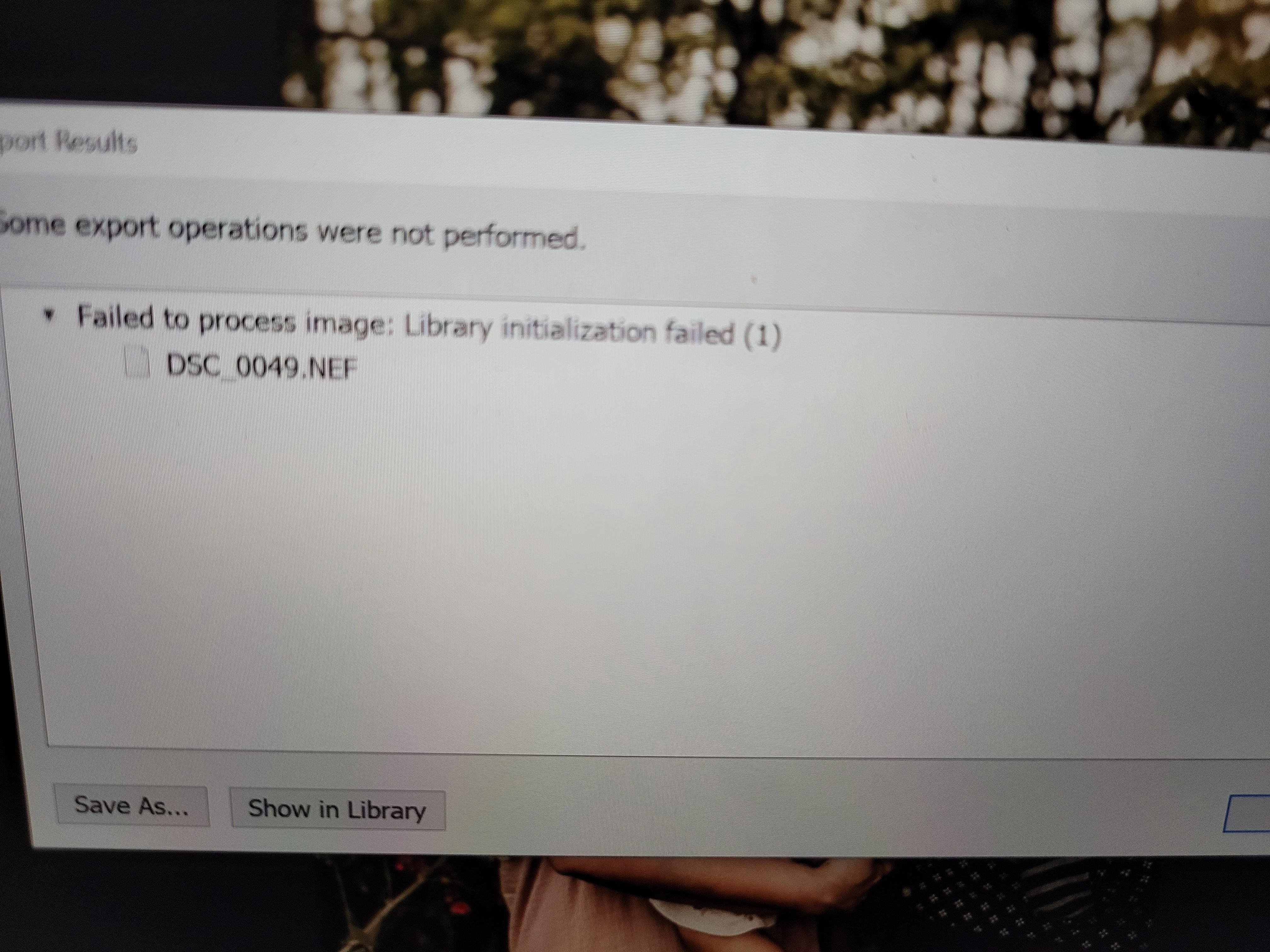 Error message on export "Failed to process image: Library initialization failed"
