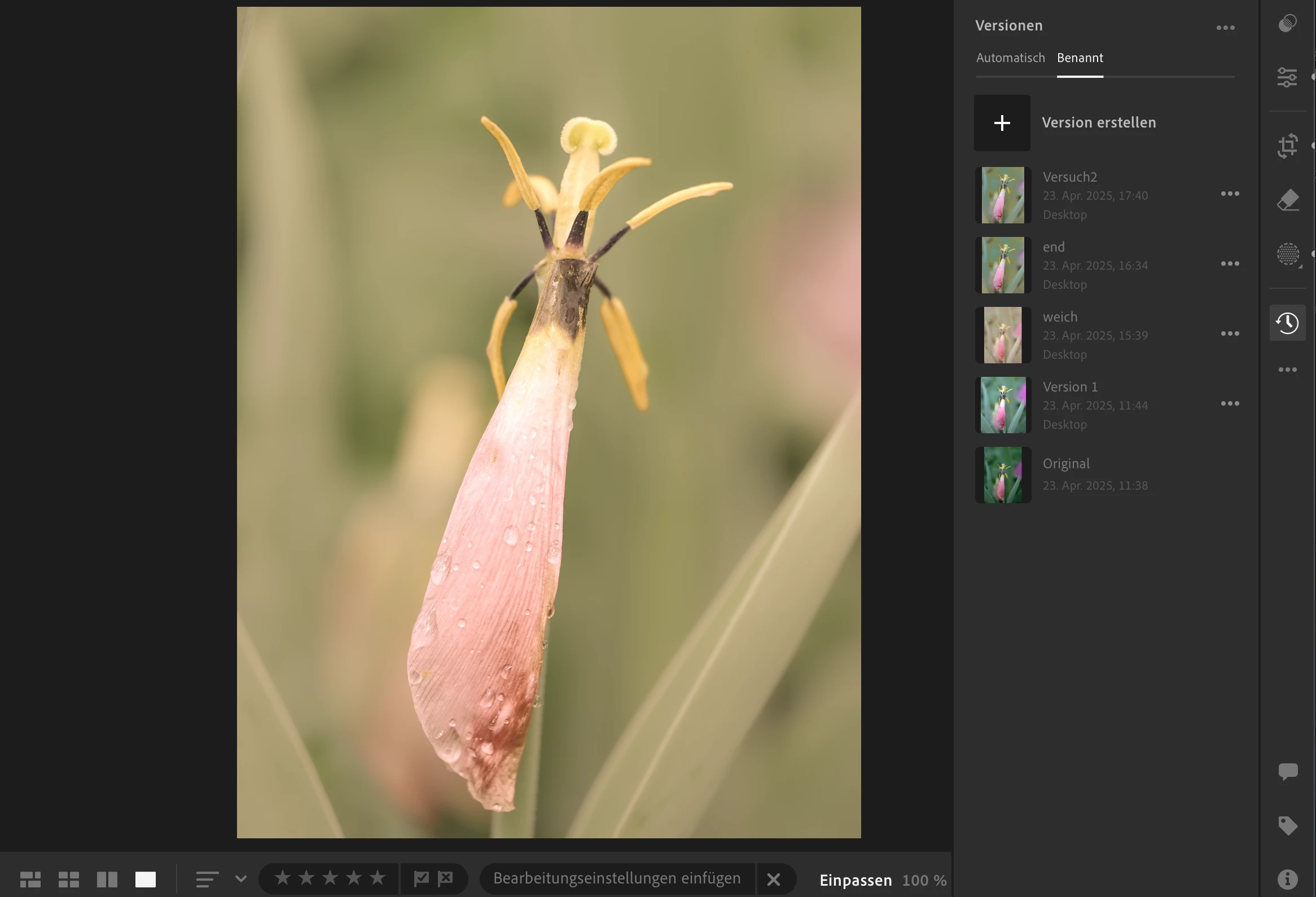 Beim Editieren eines Fotos war schon das kleine Versionbildchen in anderen Farben als die große Bildschirmansicht , die ich bearbeitet habe und es wird auch genau mit diesen falschen Farben exportiert.