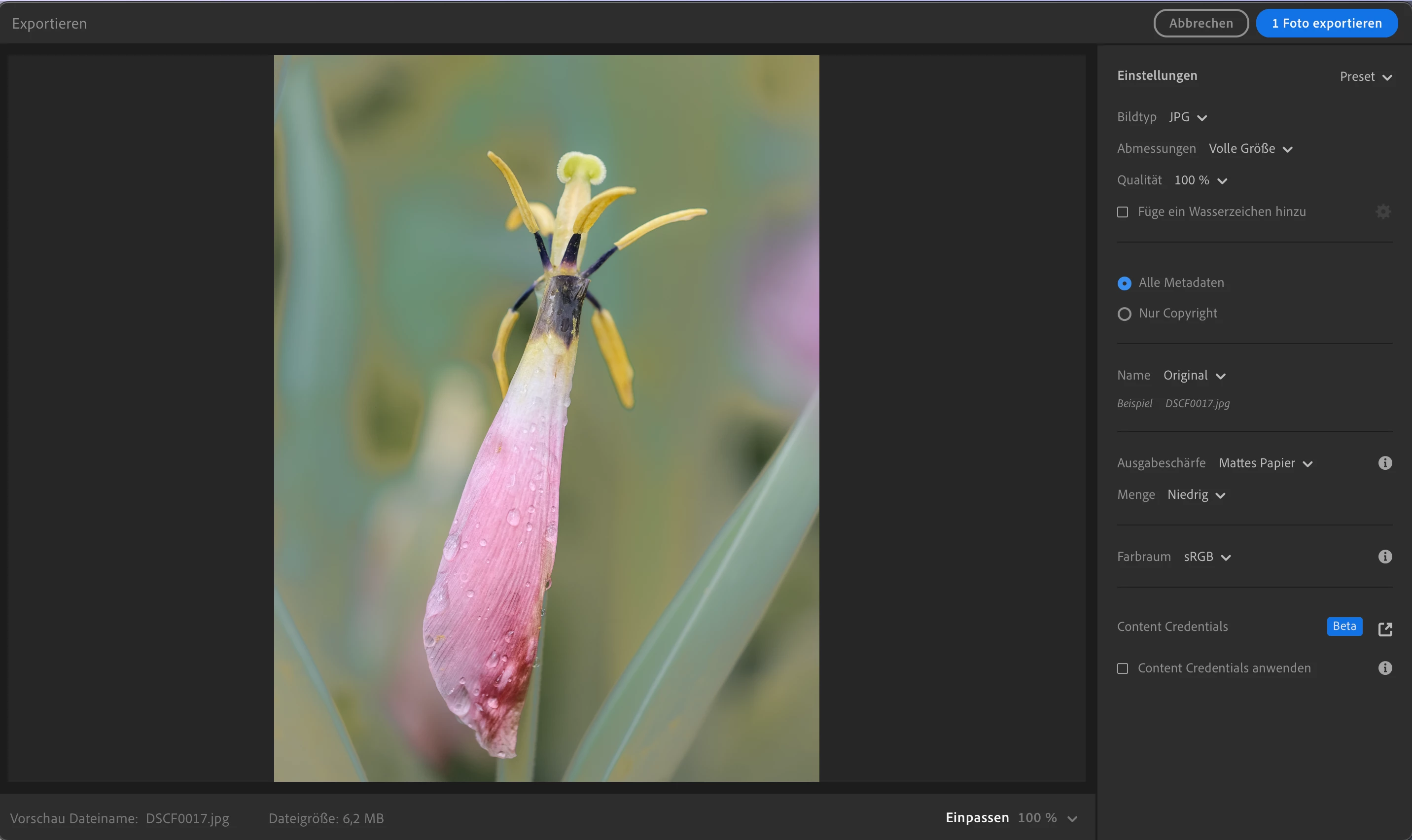 Es werden falsche Farben exportiert LR
