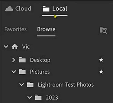 The Lightroom 'Local' tab will only "browse" your files (where they are located) on the hard-drive.