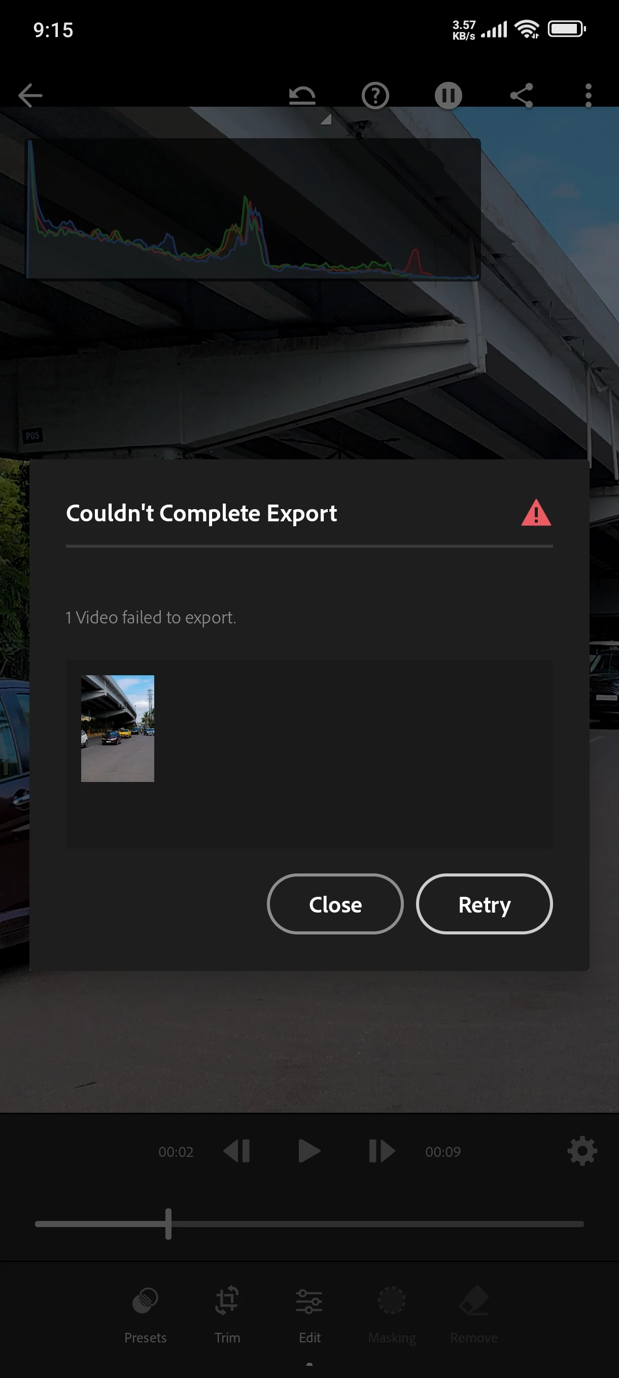 I'm using lightroom mobile 9.3.1 version. I edited one video and tried exporting it but the export got failed no matter how many times i do. I am exporting it as MP4 and it says "Couldn't complete export" "Video failed to export". Please help me with this issue, If i can't make exports then what is the use of taking subscription.