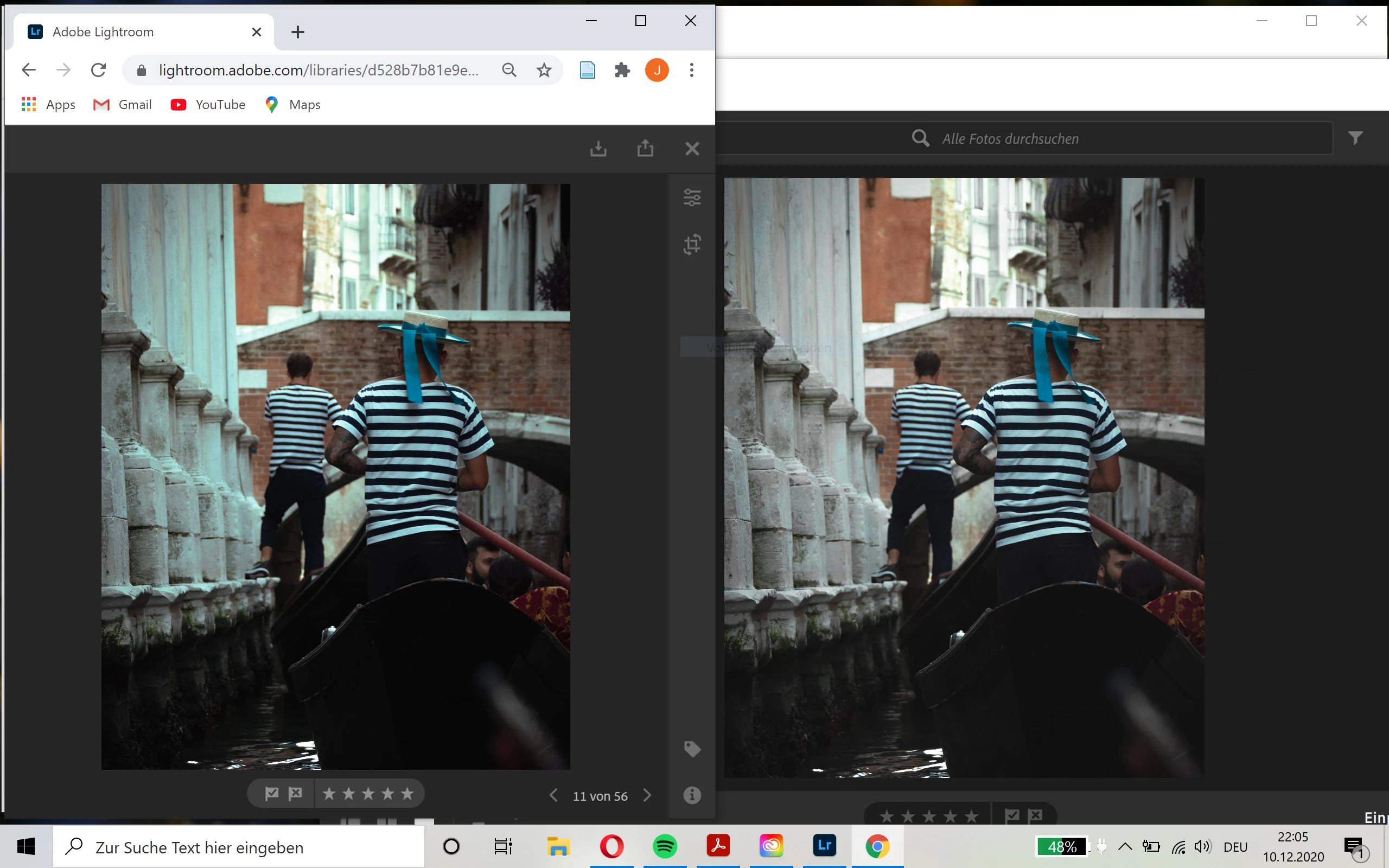 PS: The attached image shows the comparison of the "lightroom for web" view (left) and the notebook lightroom view (right). Note the contrast increase on the boat.