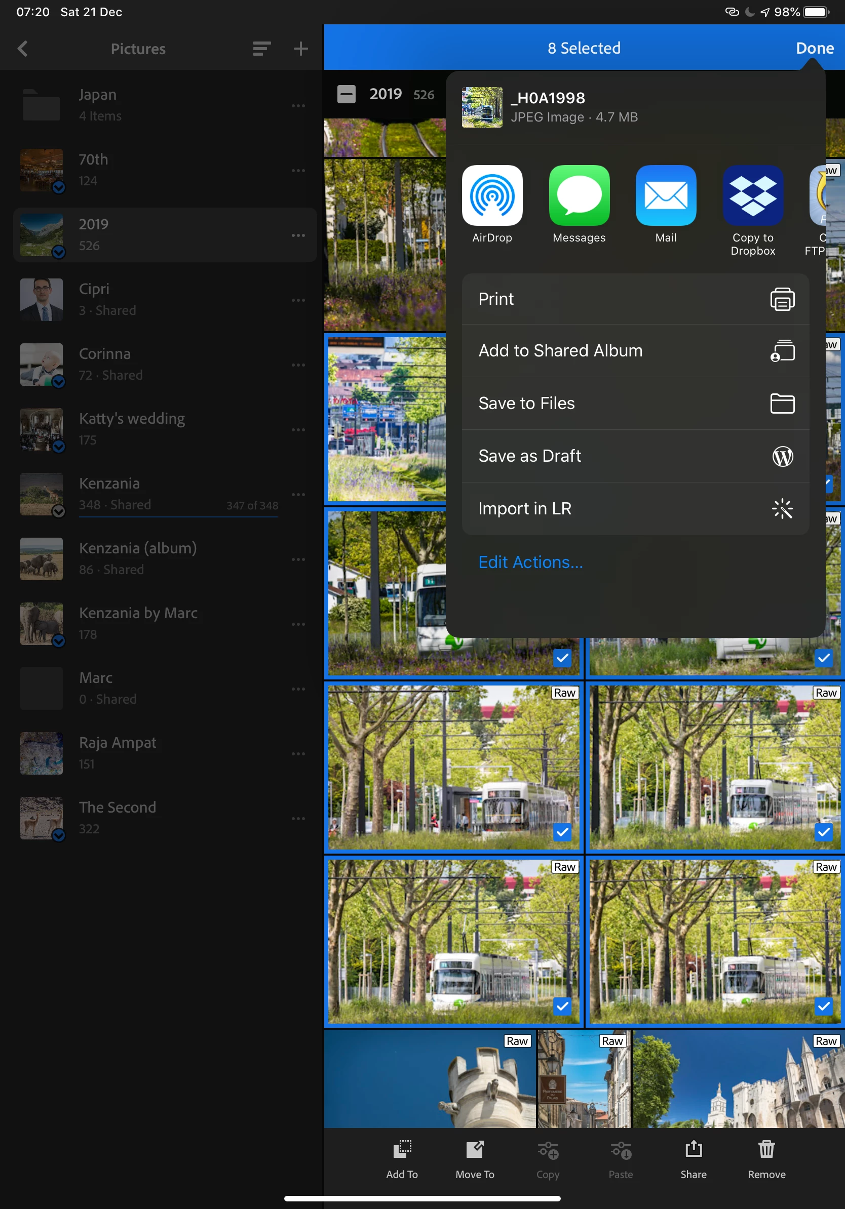 i need to deliver the pictures to a client, the issue i am having, is after i select all the pictures (72) i select "export as", choosing 100% jpeg, it starts to render the pictures but on the next menu wehere i get to chose how is exported (mail or Dropbox i would like to use) only one picture is being put for export, please see print screen below, is there something i am doing wrong?