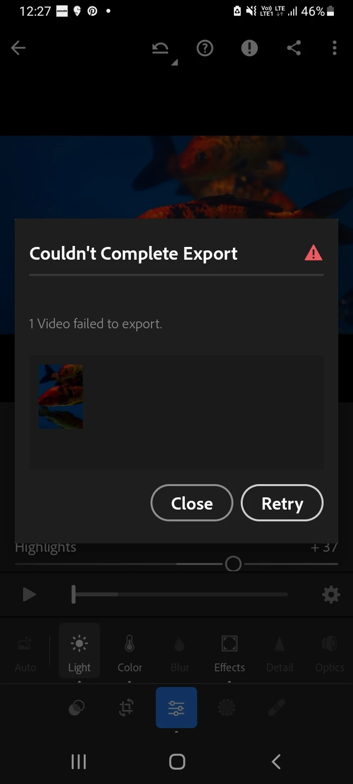TTanisha36390433a9t1ParticipantForum|Forum|1 year agoApril 22, 2024QuestionExporting problem in videoForum|Forum|1 year agoApril 22, 20240 replies58 viewsI tried exporting my edited video in lightroom mobile but isnt working. The file was just 15 mb and in mp4 format. Cleared the cache and tried uninstalling the application but it didn't work. What to do?Android