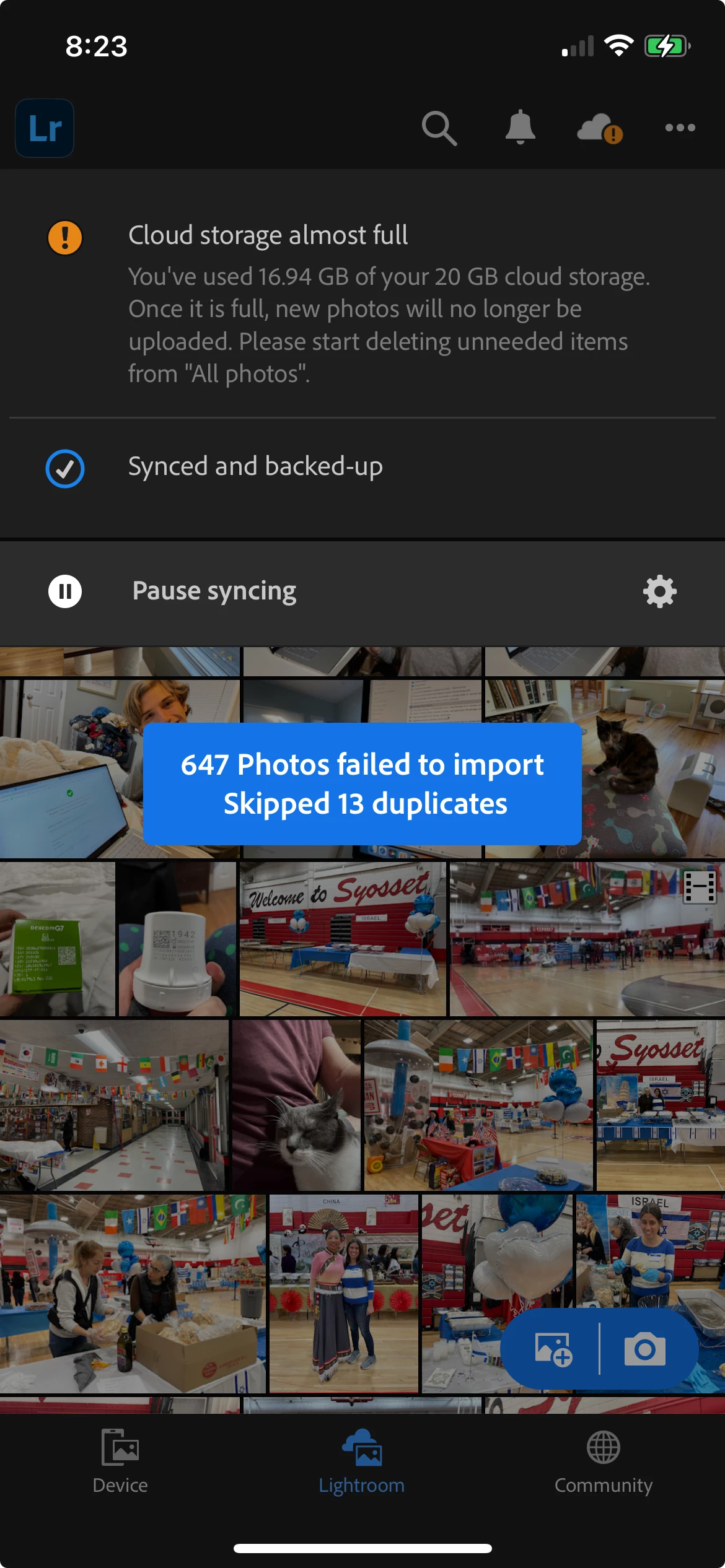 Files failed to import from LR mobile