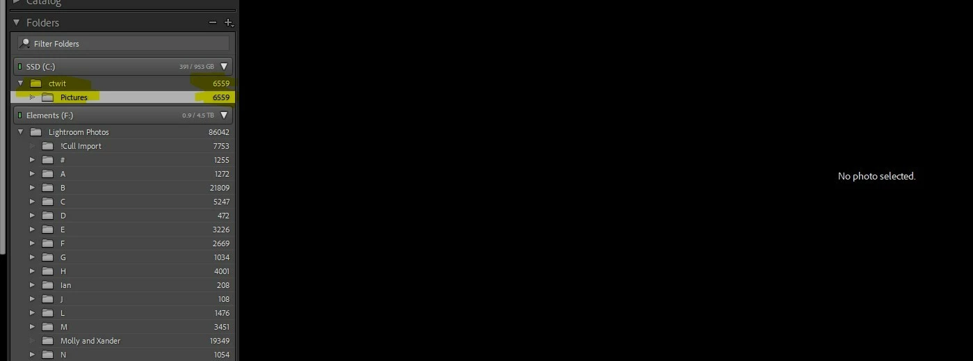 Hello- I have an issue where the folder panel is stating there are photos in my C drive, but then I click on that folder, there are no photos. Even when I navigate to that folder in explorer, there are no photos I can find. That folder has been there for a while. I think I added it a while back when I was trying to experiment with some AI assist culling software. Thoughts?