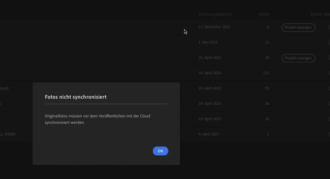 Ich habe mehrere Alben auf Adobe Portfolio. Seit dem neuesten Update kommt nun diese Fehlermeldung, siehe unten im Anhang.