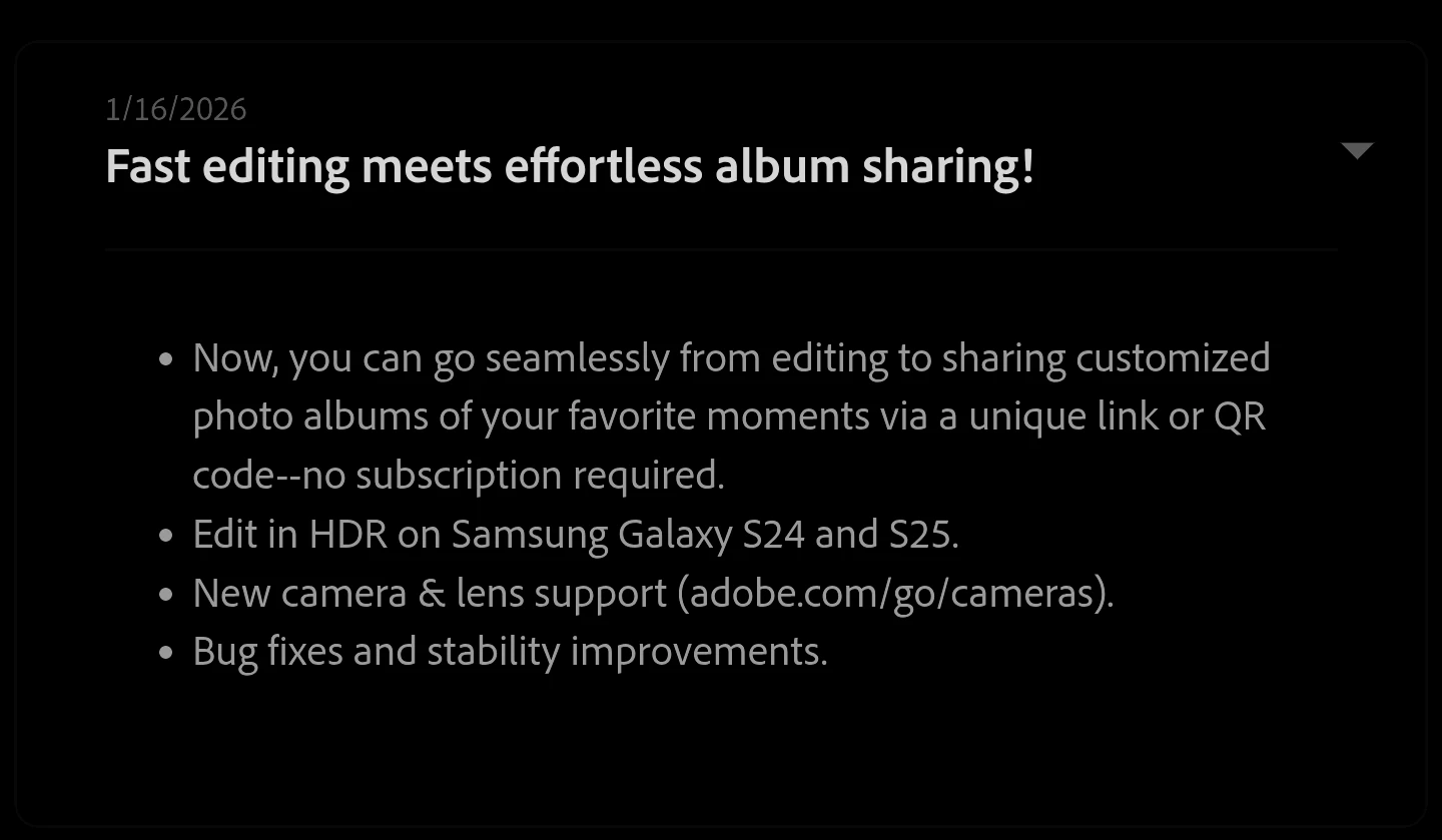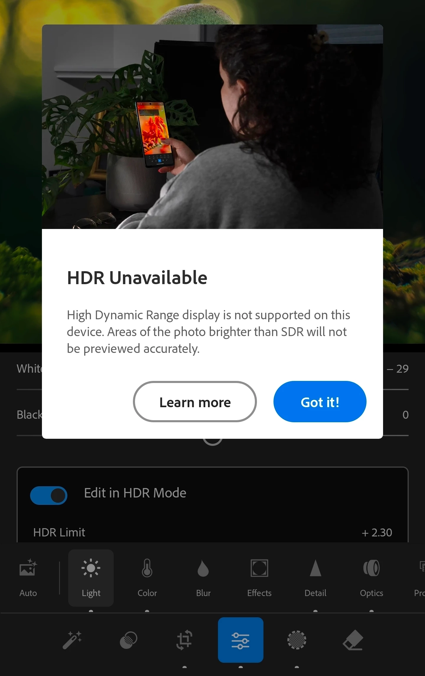 As of 1/16/26, HDR Editing is supposed to be supported on the Samsung Galaxy S24 and S25 phones. When I turn on HDR Mode, with all relevant settings in my S25+ on, the app tells me that it's not supported on my device. Am I doing something wrong? Is it not actually supported like the update claims?