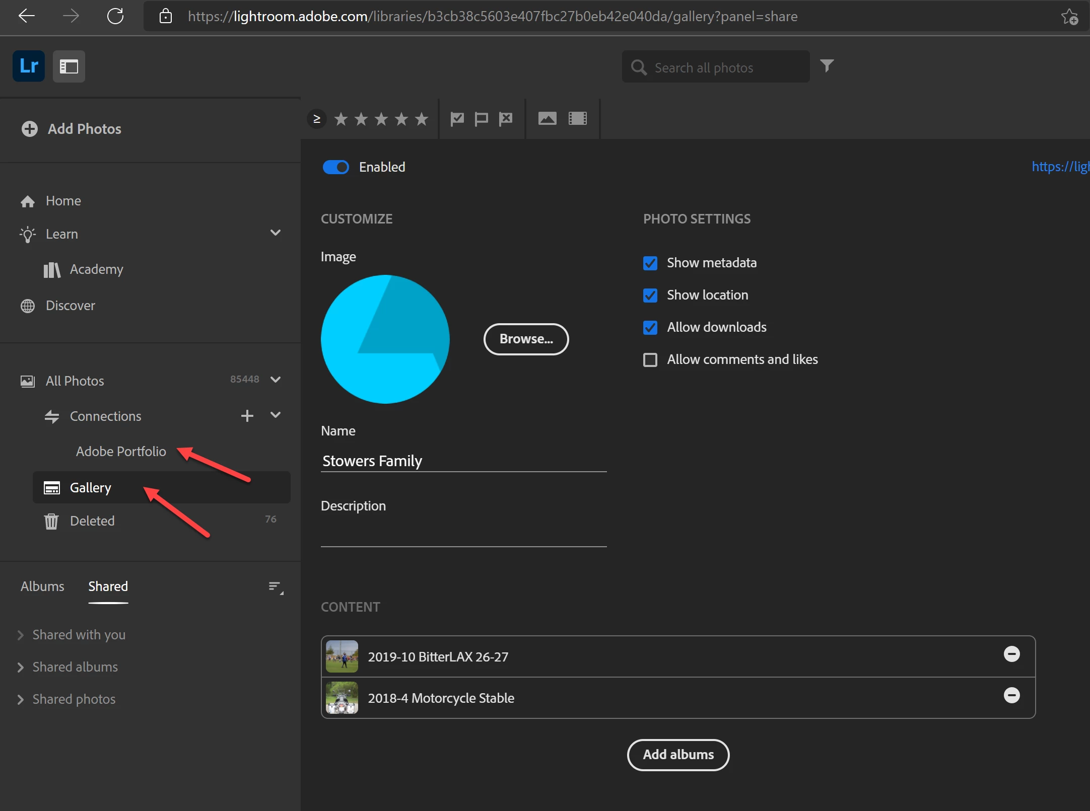 I am a photo hobbyist. In my workflow, I use all versions of lightroom. In sharing photos, I seem to have inadvertently shared some as Galleries and some through Portfolio.