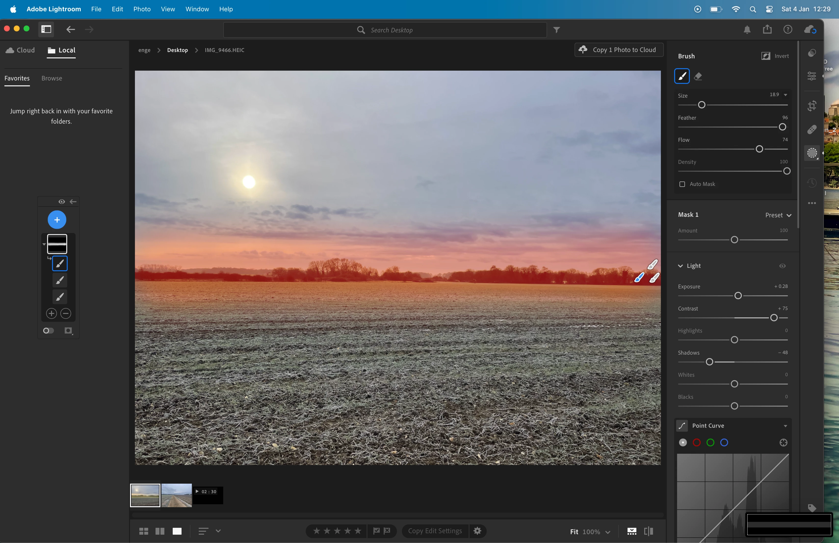 See attached still: if I create my mask in red, make an adjustment, how can I then adjust the inverse space without losing what's inside the mask?