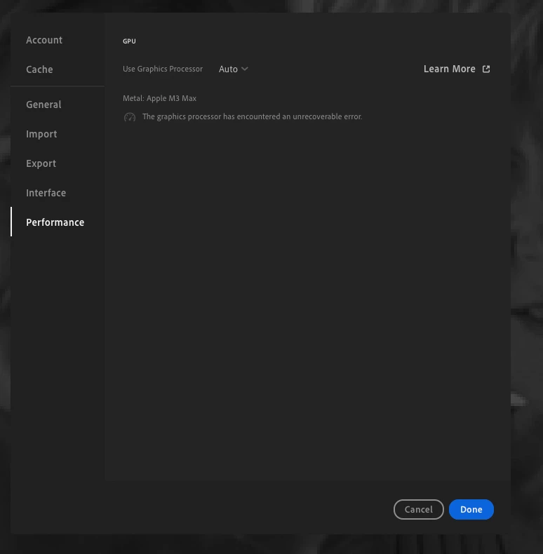 "The graphics processor has encountered an unrecoverable error."