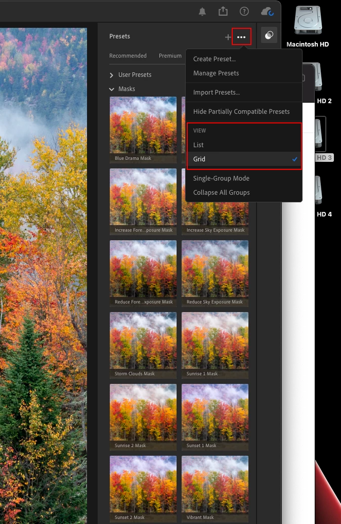 I saw a Youtube video of a guy showing off his presets and to my utter surprise he had two view options for presets - list and grid. It looks great that he can get a quick preview of the presets without having to hover over. I do not get these options at all and for me it's just a list? Am I missing something?