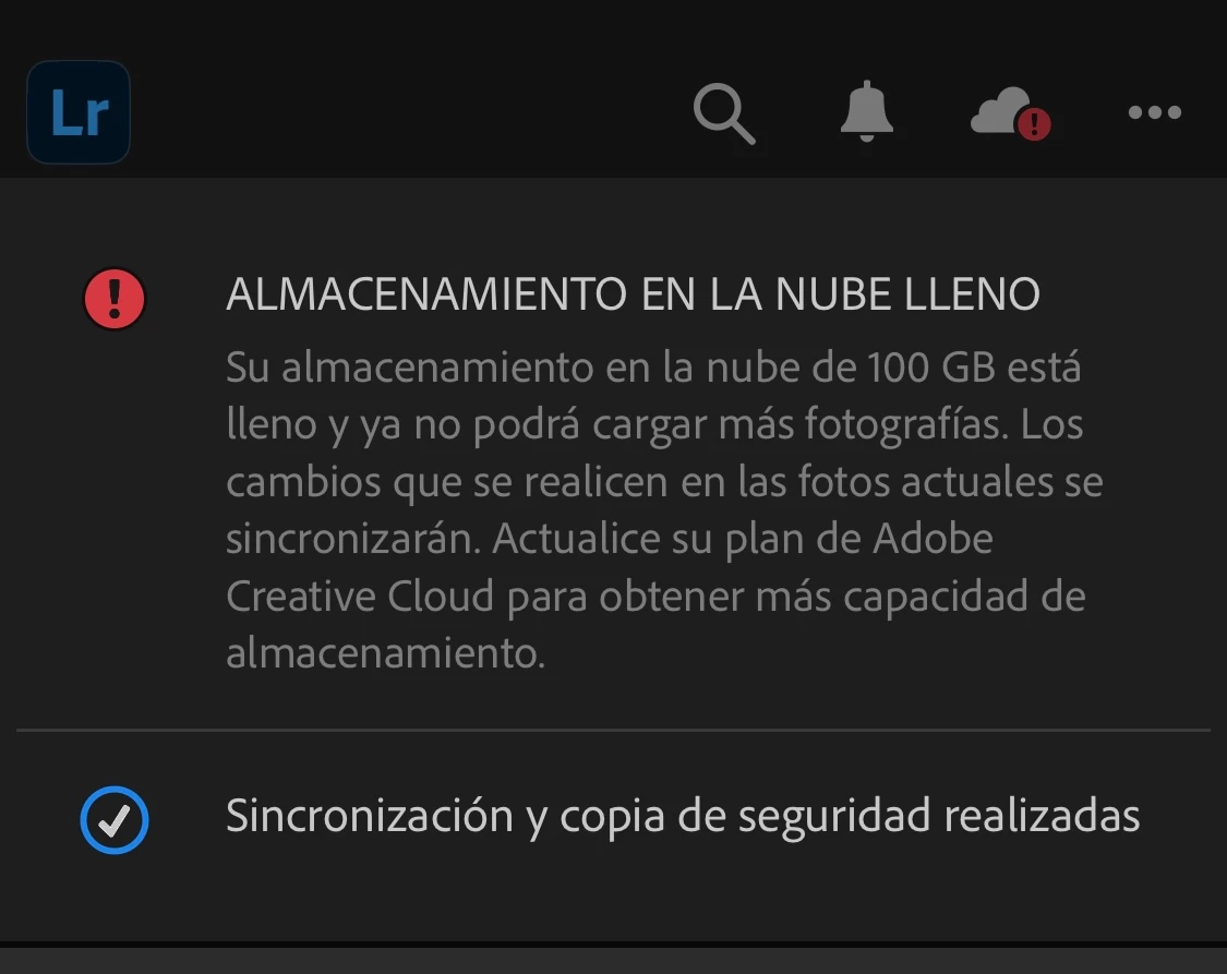 He eliminado fotos de Lightroom sin parar y sigue diciendo que está sobre pasado mi almacenamiento
