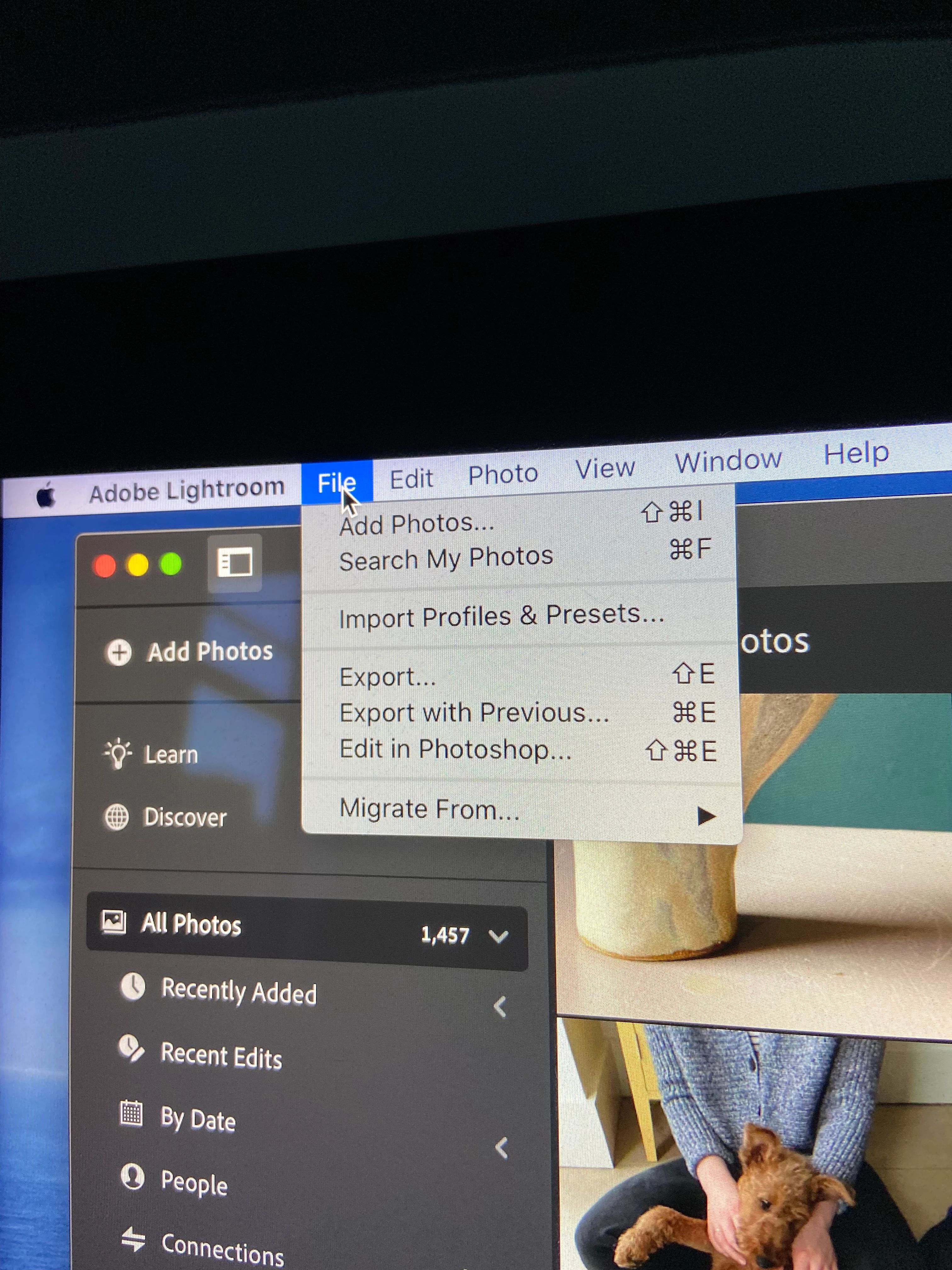 Anyway, when I look online, the guides say in the Lightroom menu bar to select File > Tethered Camera>...