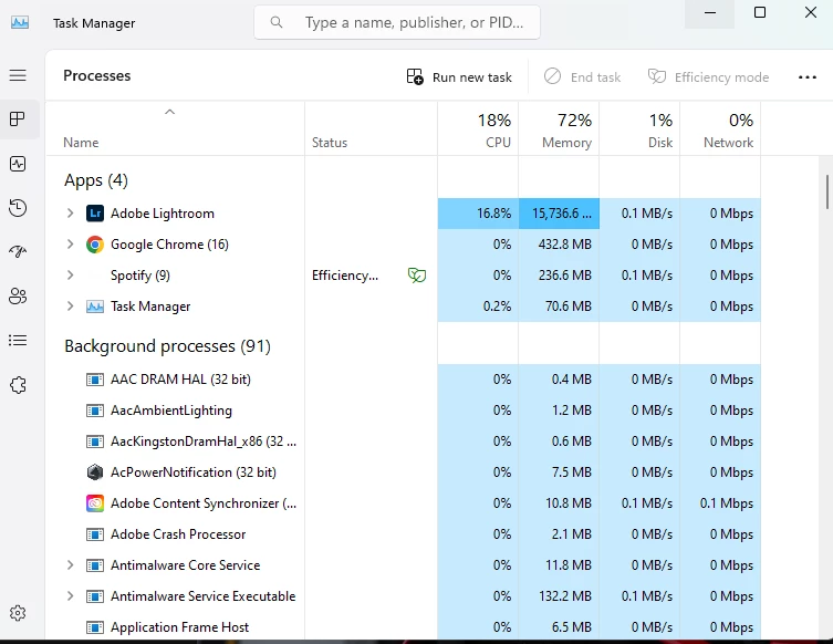 High memory usage Lightroom