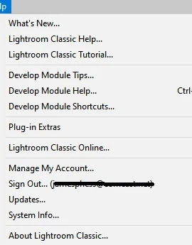 However, to answer your question, you can go to the help menu in LrC for instance, and there is an option to sign out.
