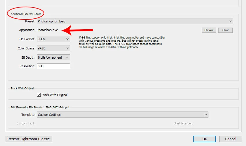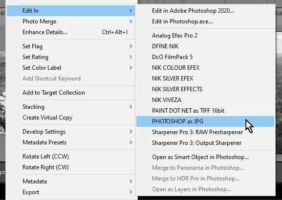 How do I save a photo in Photoshop as a JPEG for it to appear in Lightroom with Ps adjustments?