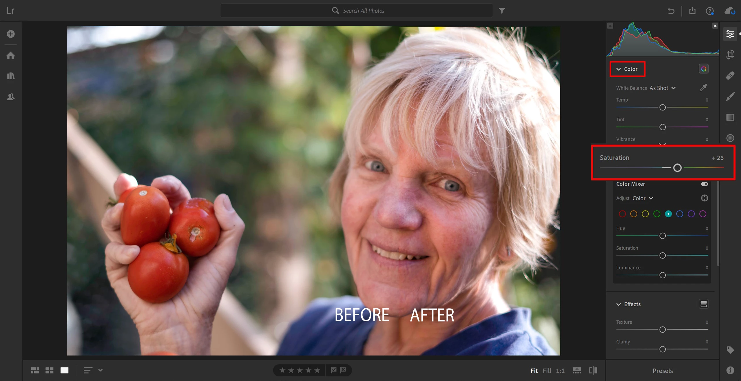 Portrait editing: Adjust dehaze, saturation and vibrance in Lightroom