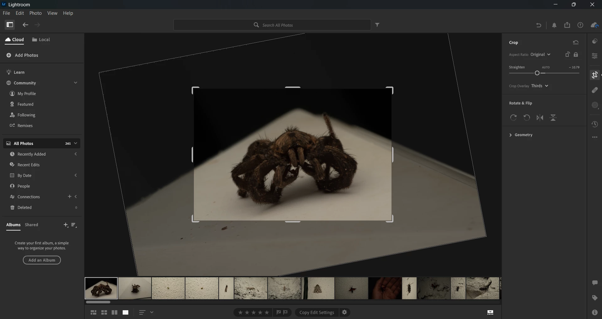 In other photo editing apps such as Microsoft Photos, I am able to use touchscreen on my laptop to crop images by "zooming in" with two fingers. On Lightroom, when I try to zoom in, the photo rotates instead of cropping. Notice, I locked the aspect ratio, and this did not help with the rotation. Is there a way to zoom in and crop in lightroom without dragging the corners of the photo to crop?