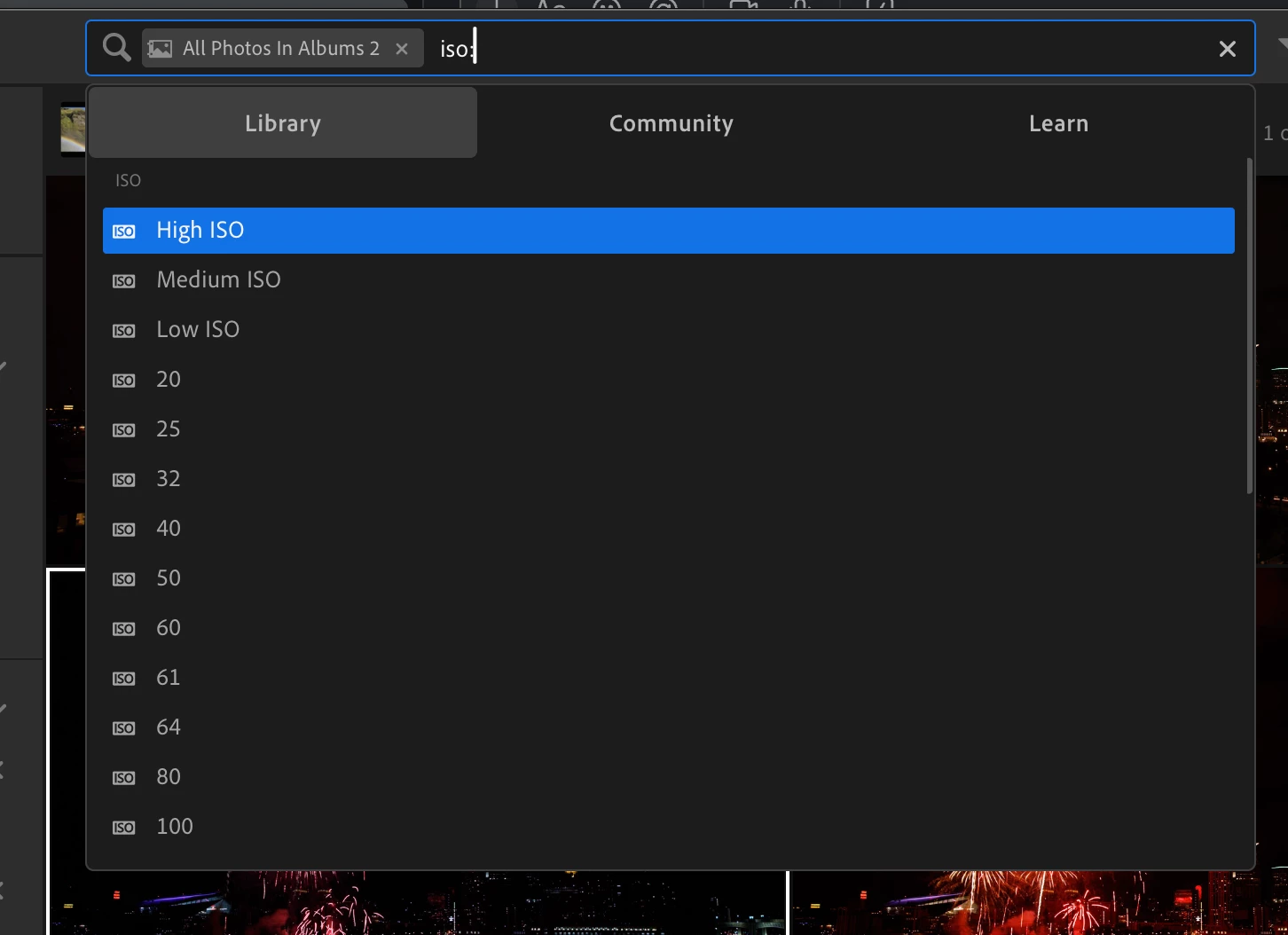 Is there a way to filter by ISO value of my images in Lightroom Cloud?