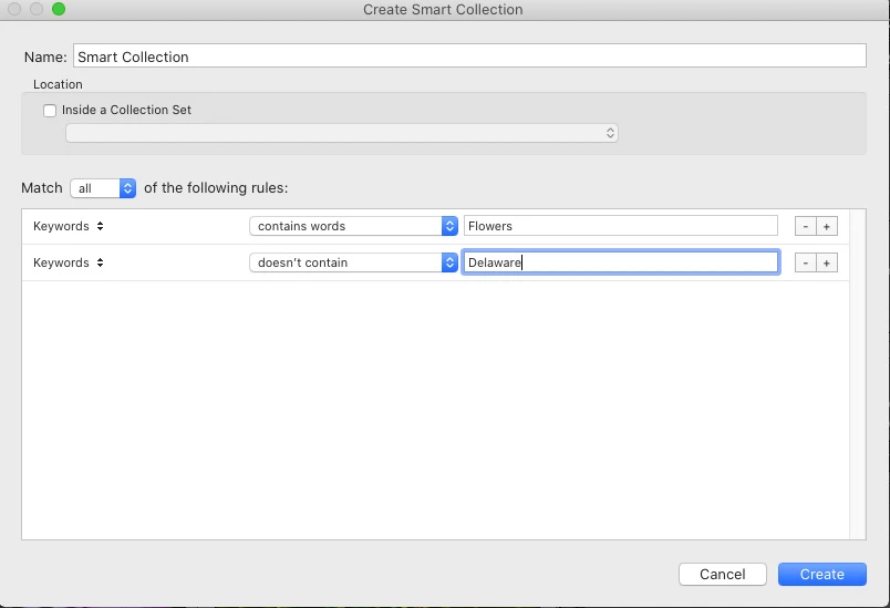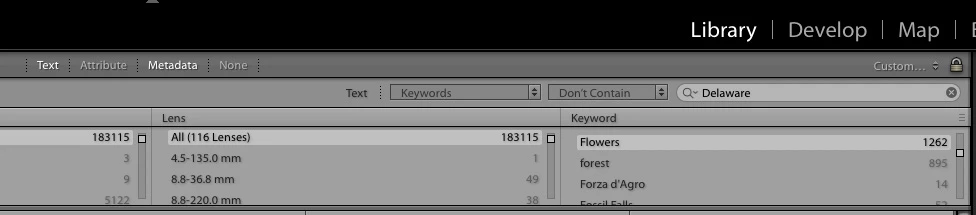 Is there a way to find photos that have some tags but do not have other tags? For example, suppose I have two tags - "flowers" and "Delaware". How can I find all photos of flowers except those that were taken in Delaware?