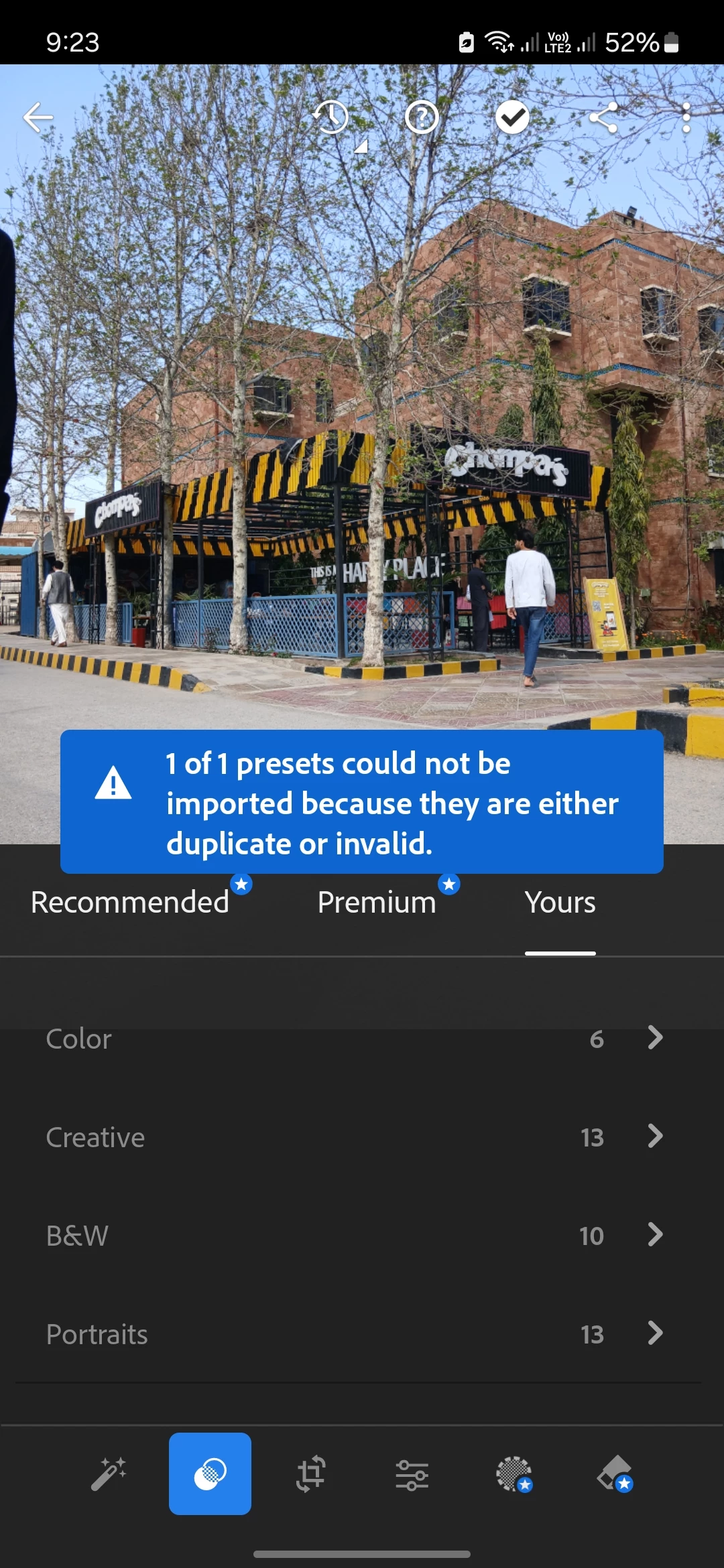 When I try to import in Dng file, the give me the following error, although it's my Owen personal and valid presets. Plaease fix it.