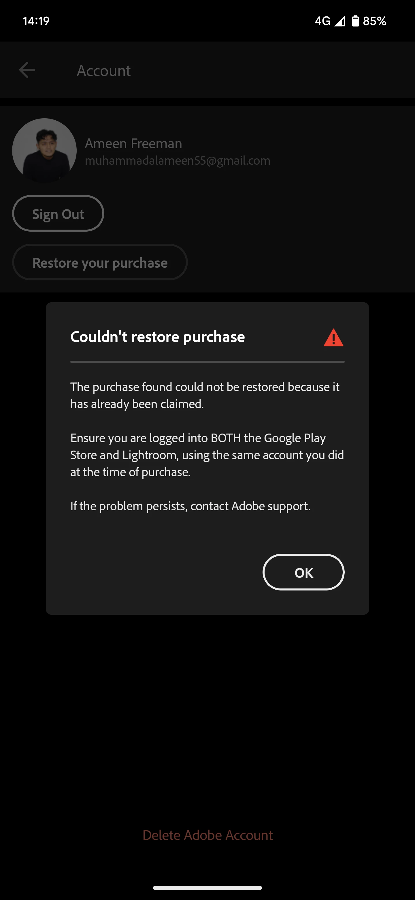 More than two weeks ago, I lost access to my beloved Adobe Lightroom Mobile premium account. Since then until now, I've been contacting Adobe customer support but nothing comes out of it. I was suggested by Google customer service to email to this address to get further assisted.