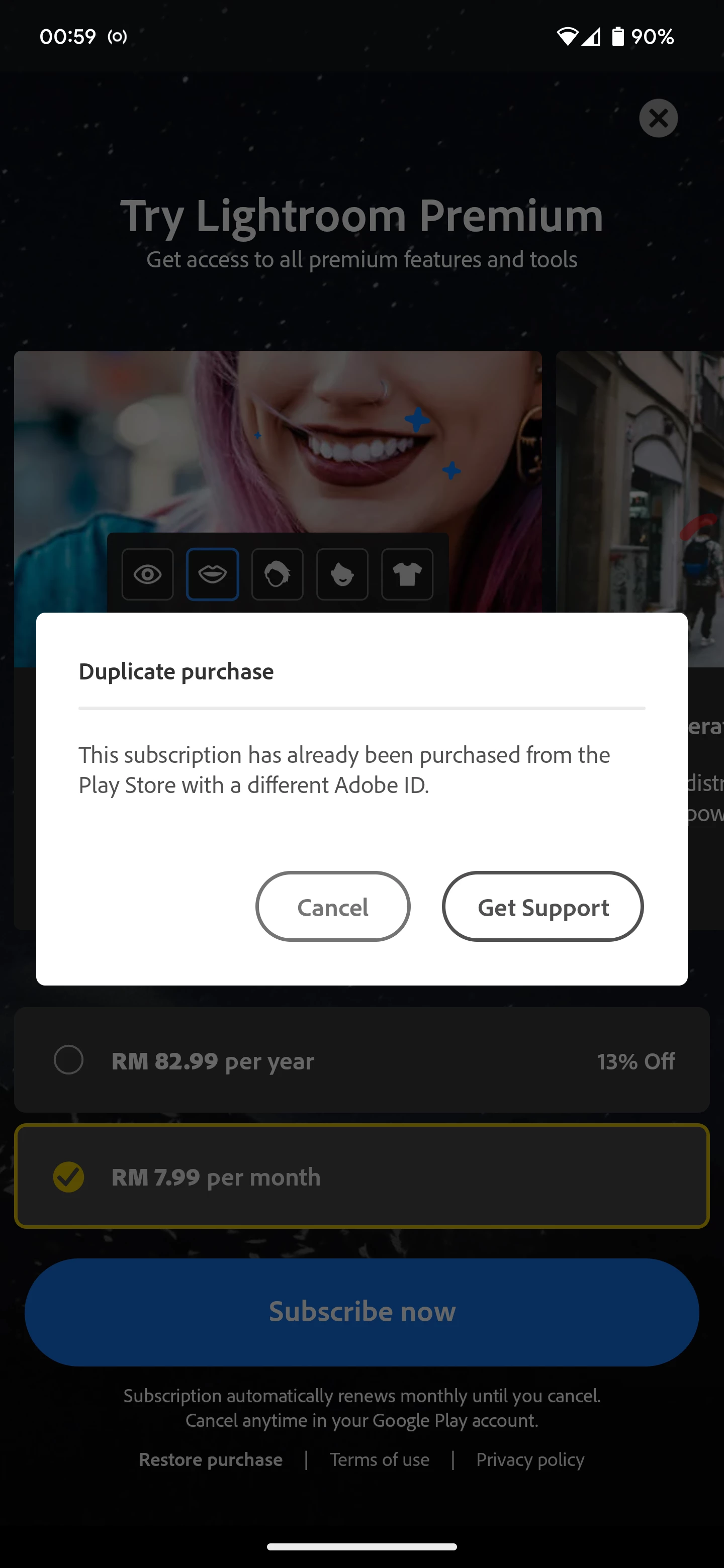 Tried to restore purchase but it says I cannot. Also when I tried logging out and in to the app, i kept getting greeted by this "Different user account found". Since I have talked to Adobe customer support agents (6 different agents at this point), they all say they couldn't help me get my account back, so I cancelled the subscription (I can't even use the app so why am I still paying right?). I tried to resubscribe, and it says 'duplicate purchase'. I am lowkey lost at this point because I love the app, but because of the hacker, I've went through two weeks of unsatisfactory customer support from Adobe.