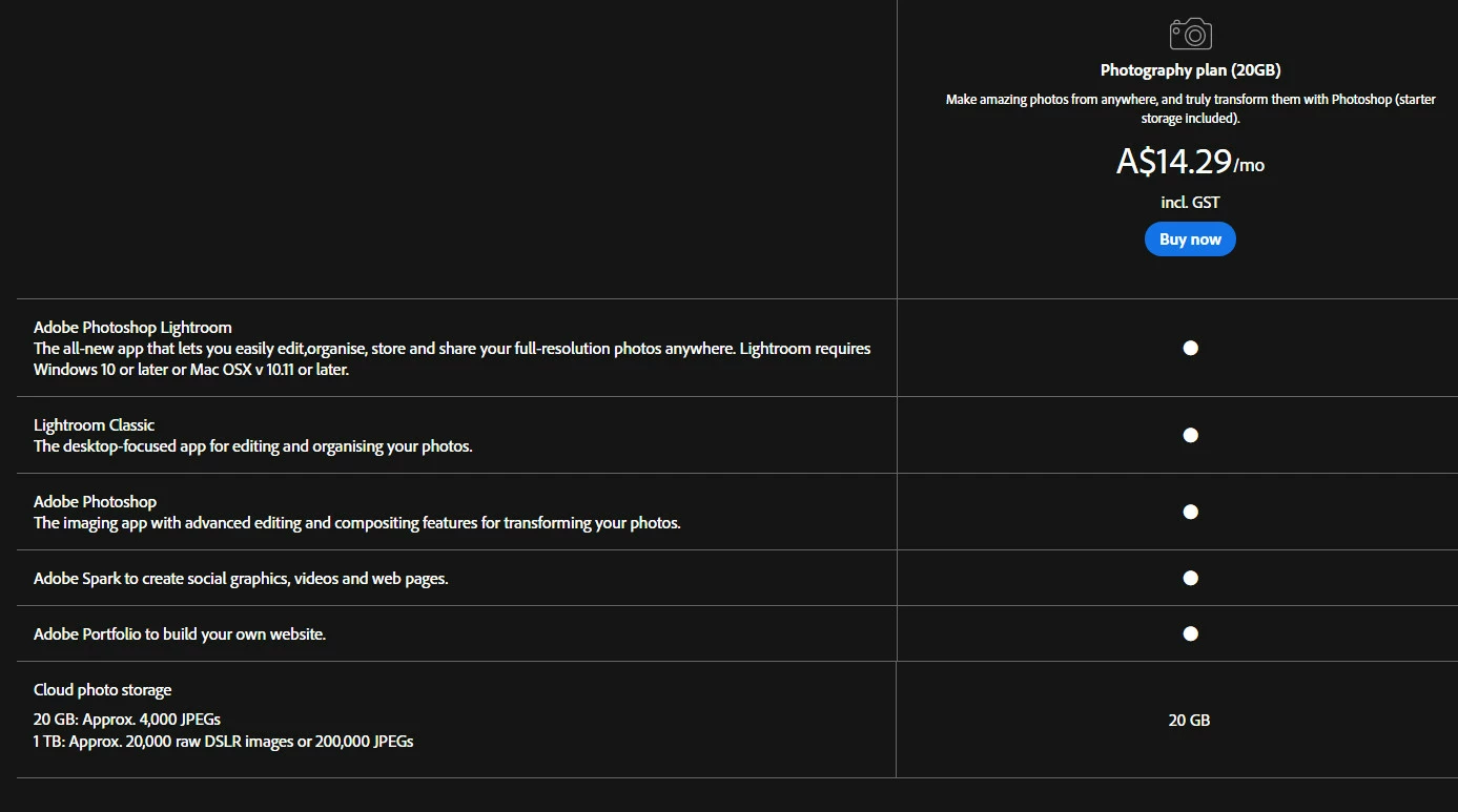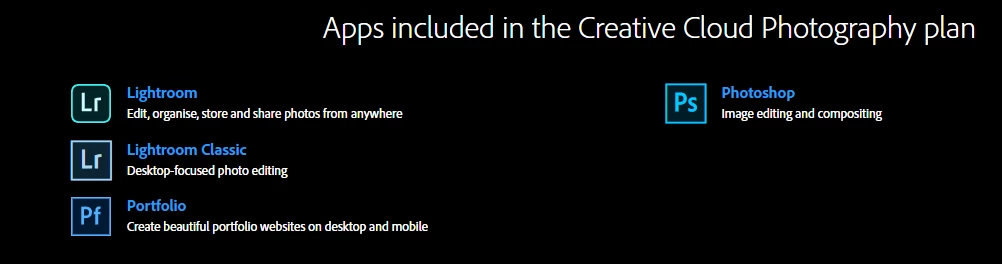 I thought Photoshop and Lightroom were included in the Creative Cloud Plan